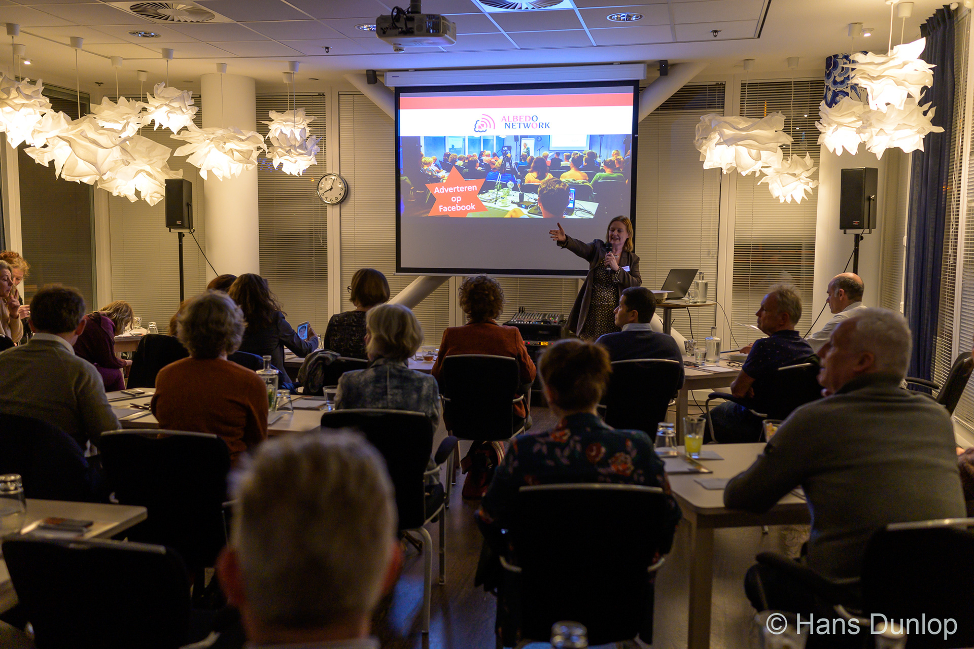 Een impressie van de bijeenkomst van het Albedo Network in het Westcord Hotel. Het onderwerp "Adverteren op Facebook".