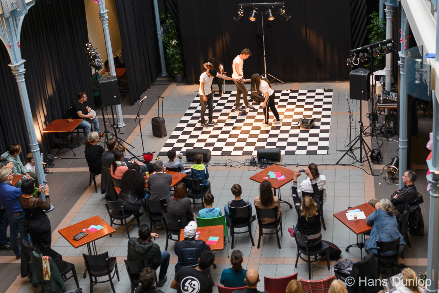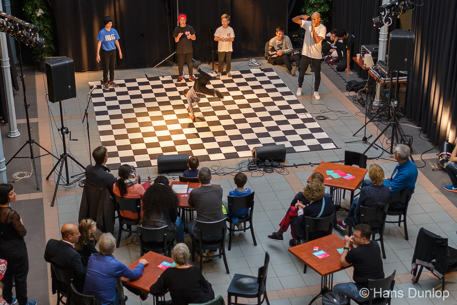 Een impressie van het regenachtige festival De Strip, "Festival Der Ontmoetingen" in Delft op zondag 23 september 2018.
