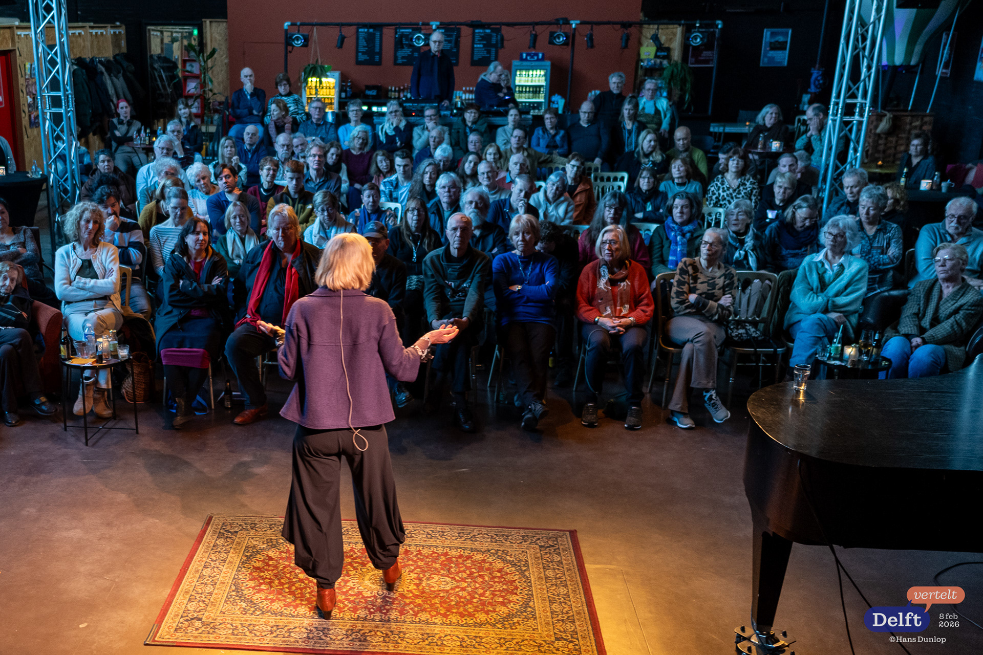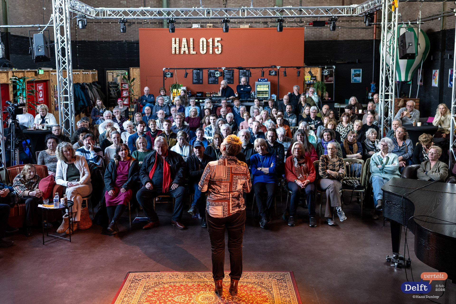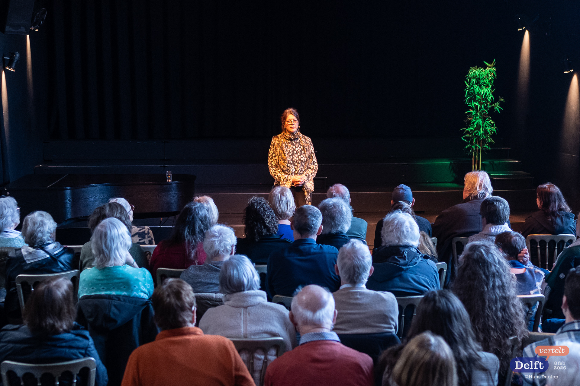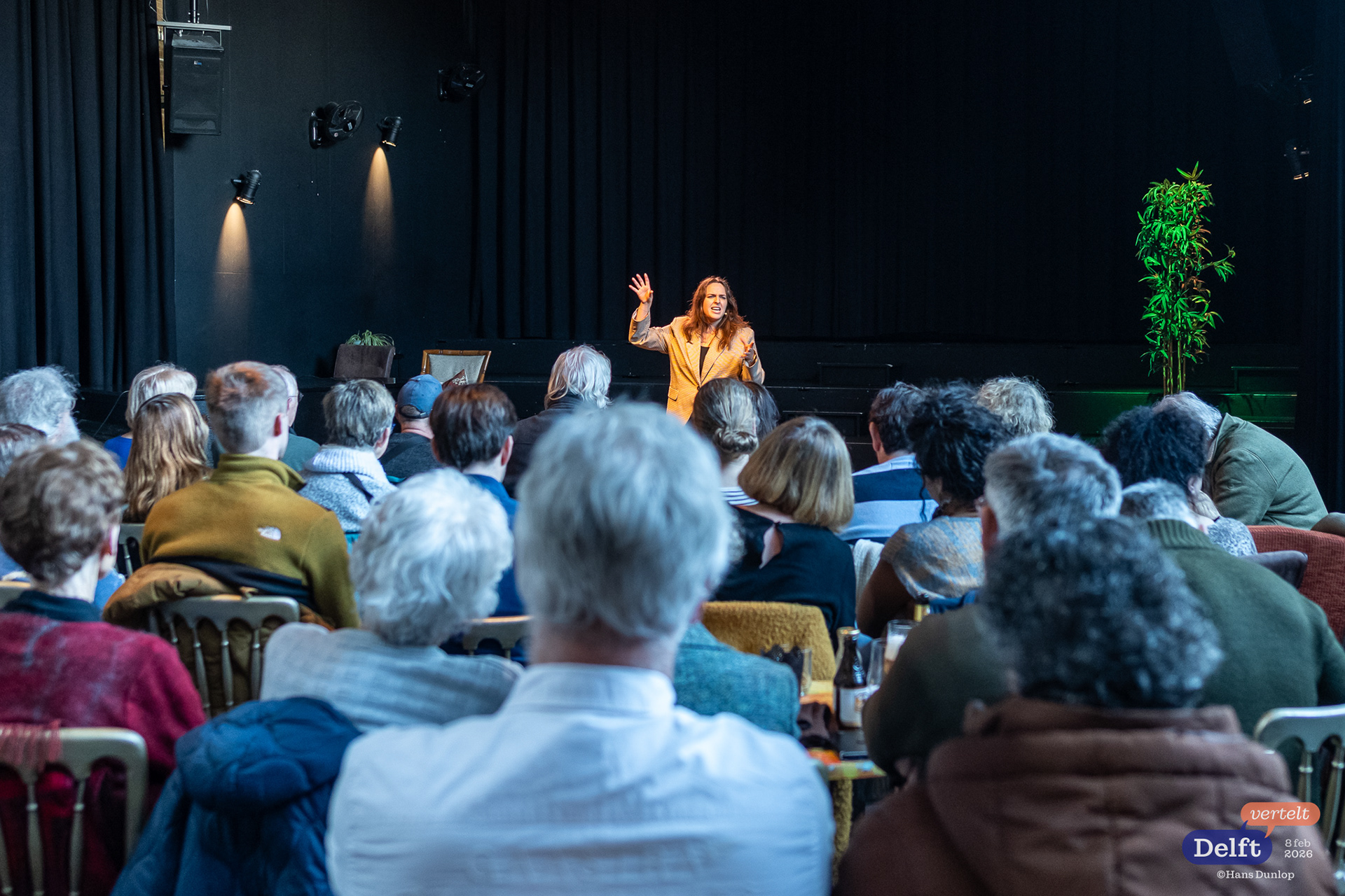 Een impressie van Delft Vertelt #39 op 8 februari 2026 in HAL015 met Sabrine Postel, Stefanie de Klerk, Irene Jeidels, Ingrid Philippens en Angelien Karsten, met muziek door Summerjay.