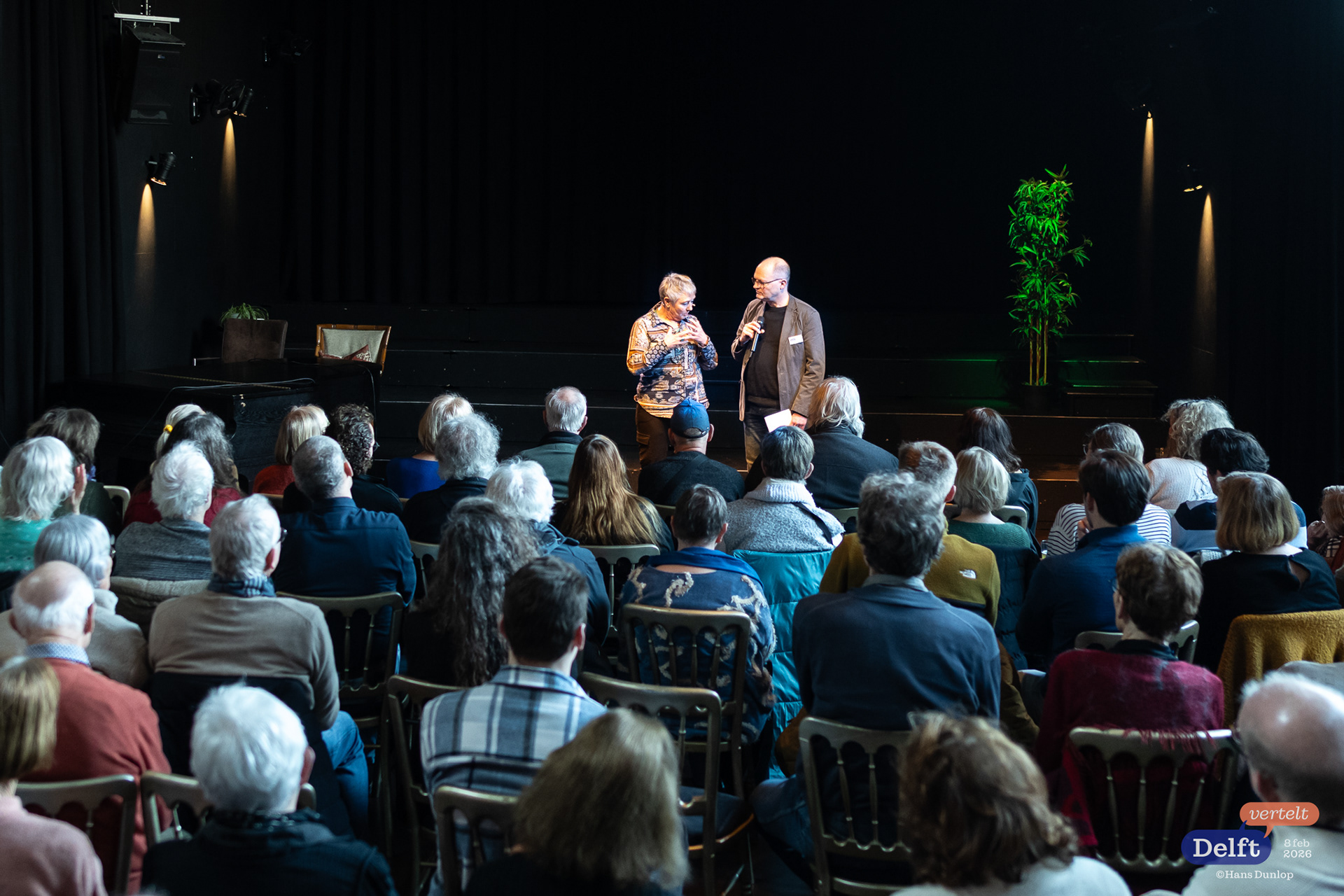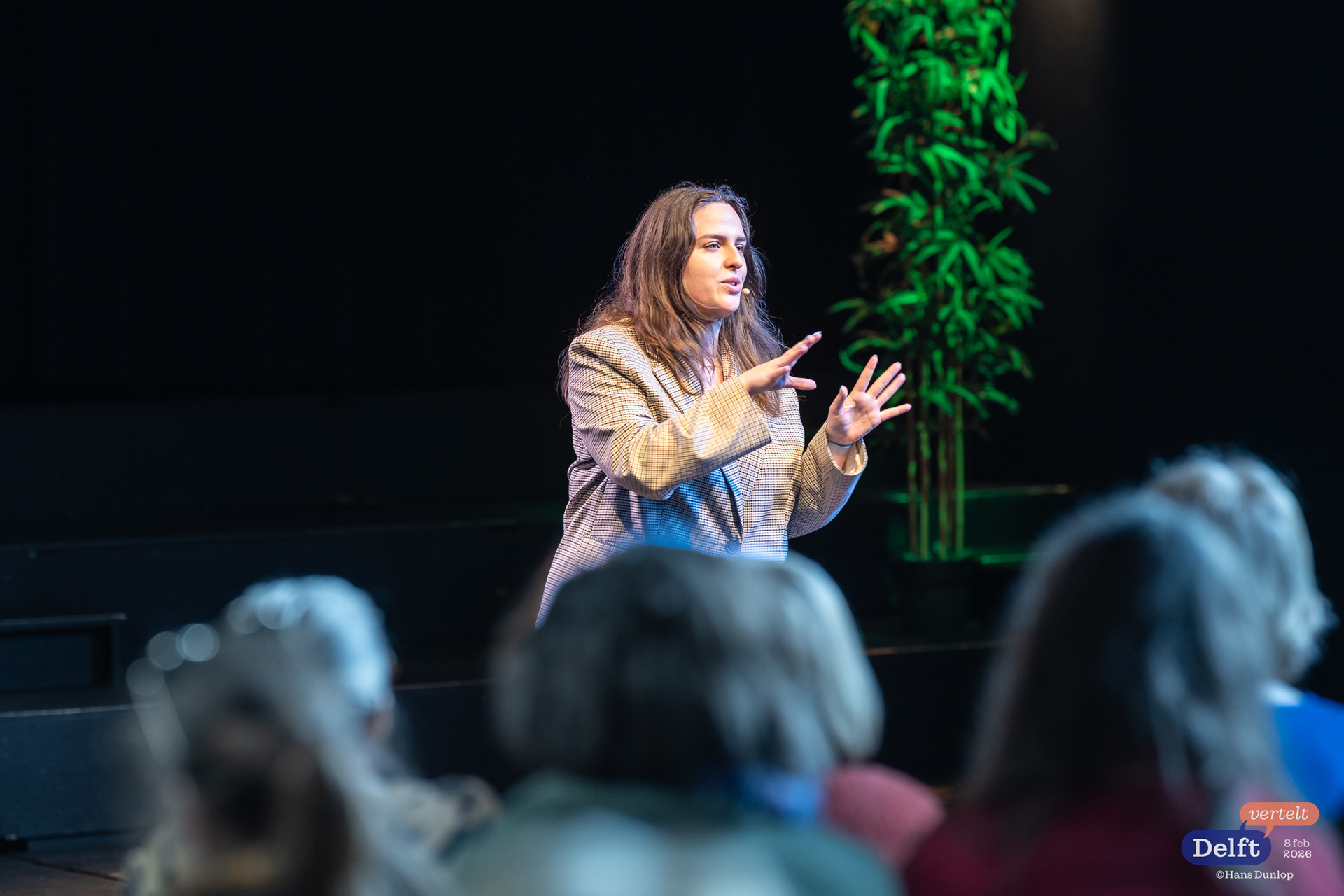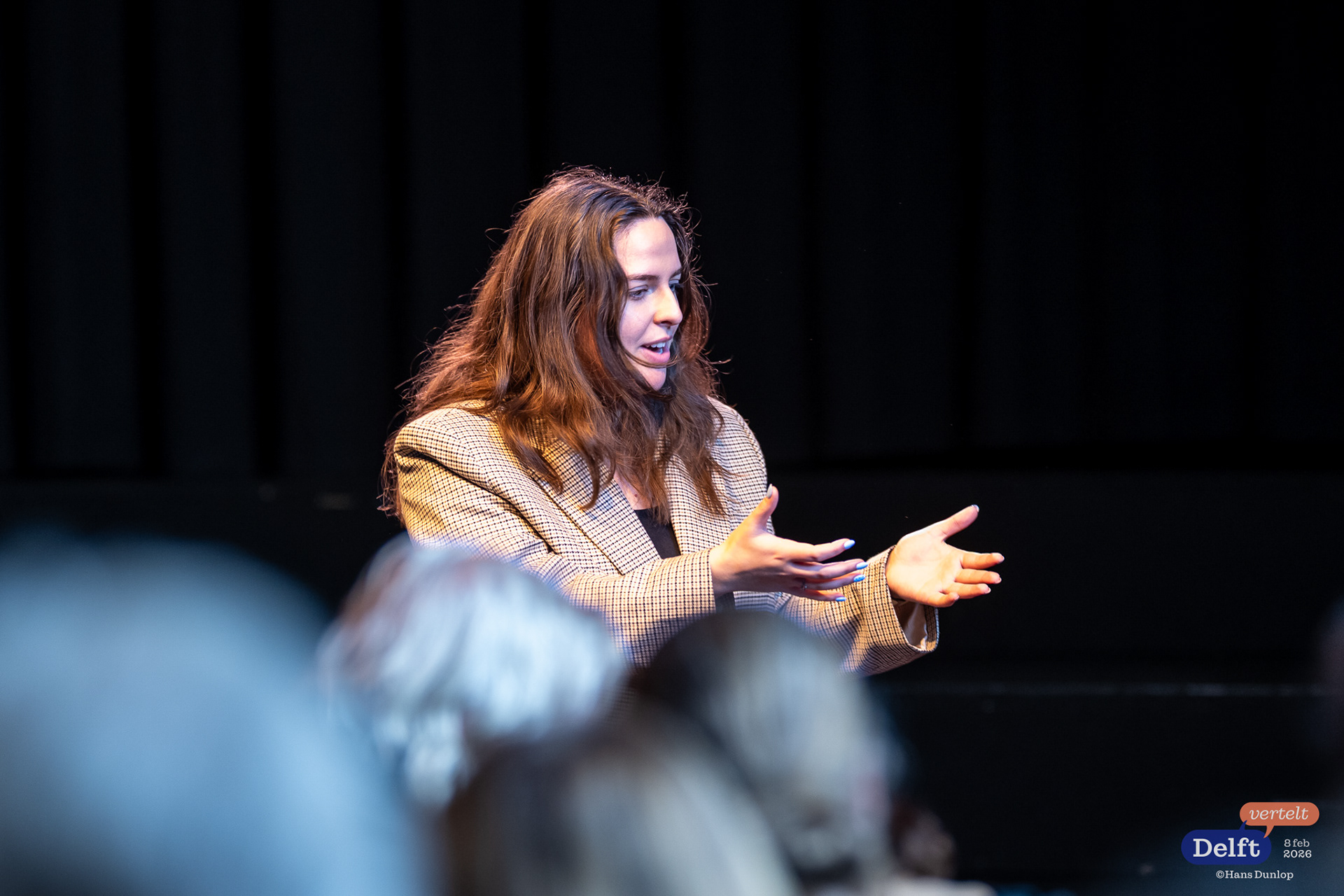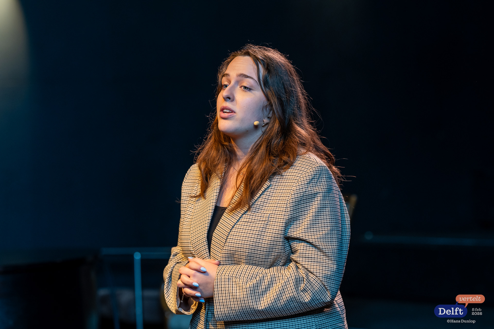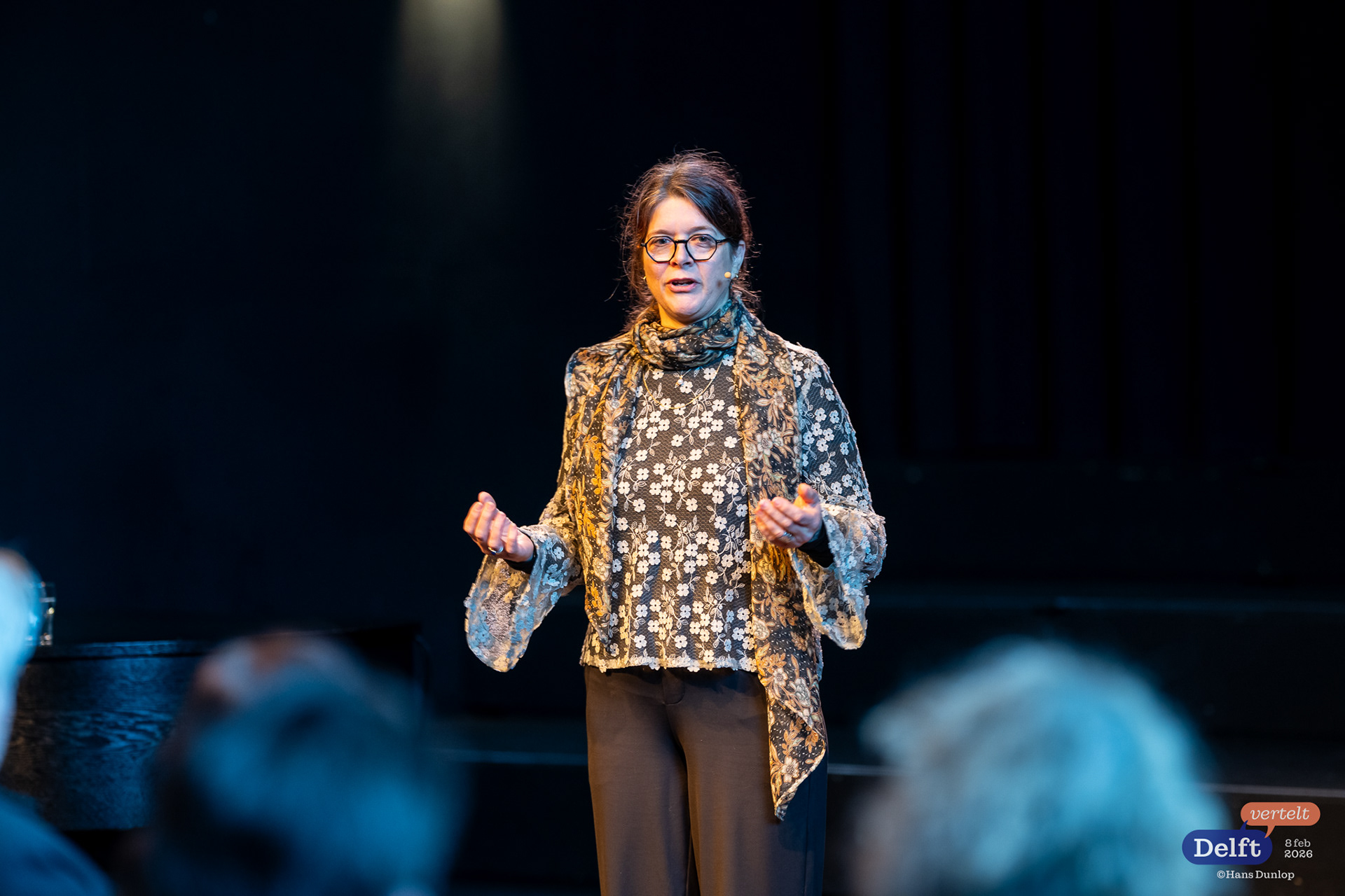 Een impressie van Delft Vertelt #39 op 8 februari 2026 in HAL015 met Sabrine Postel, Stefanie de Klerk, Irene Jeidels, Ingrid Philippens en Angelien Karsten, met muziek door Summerjay.