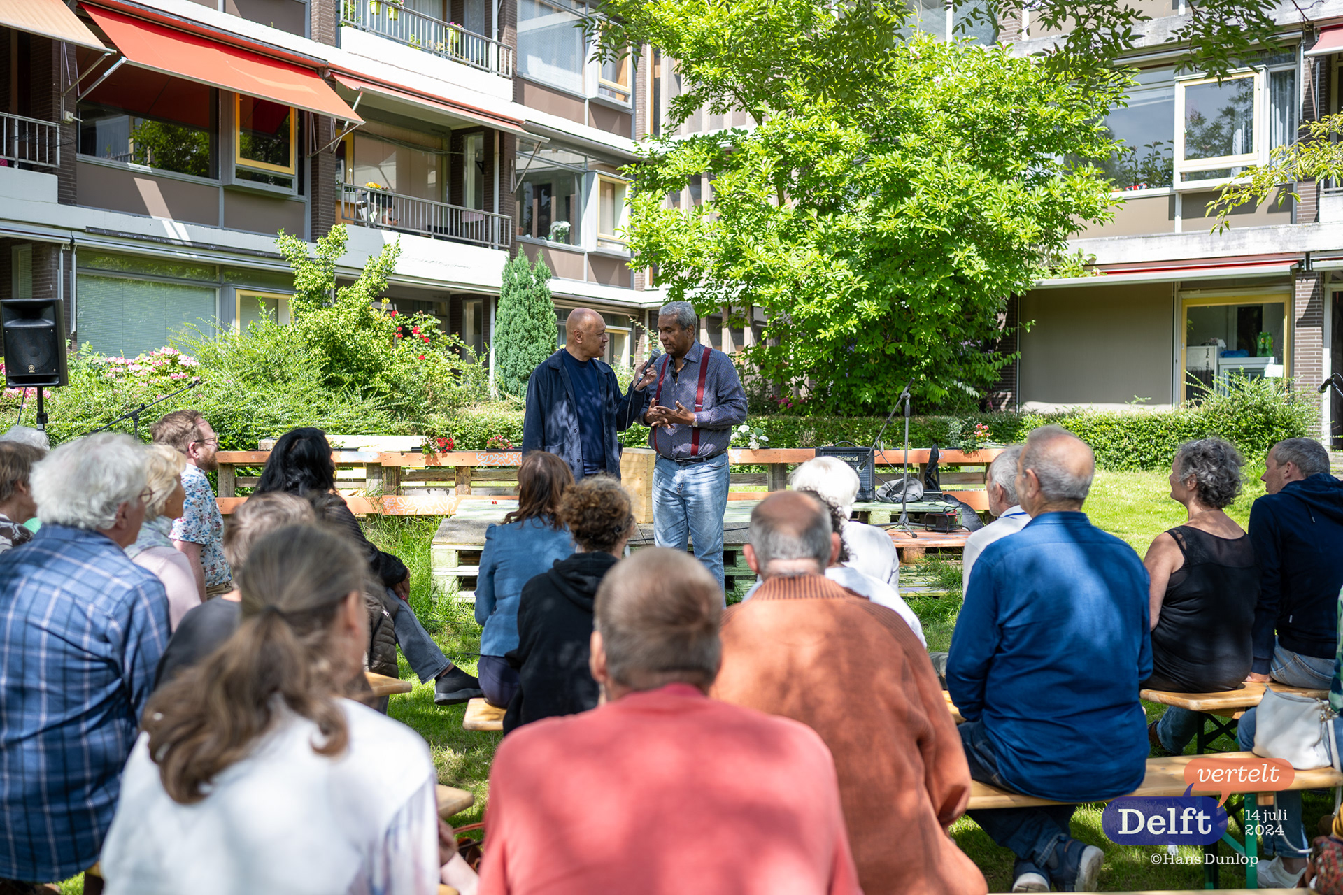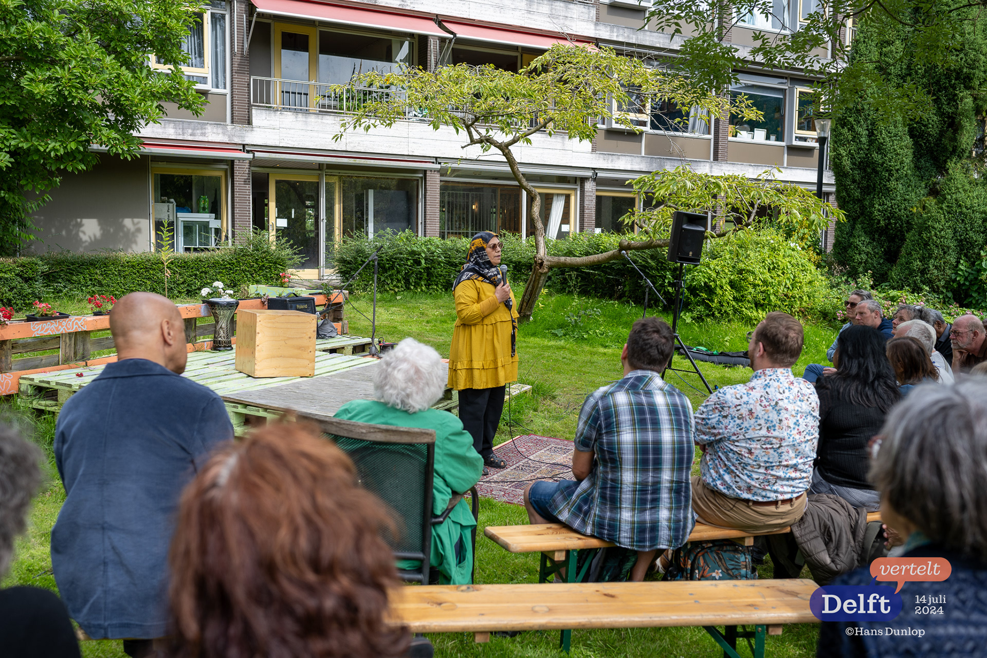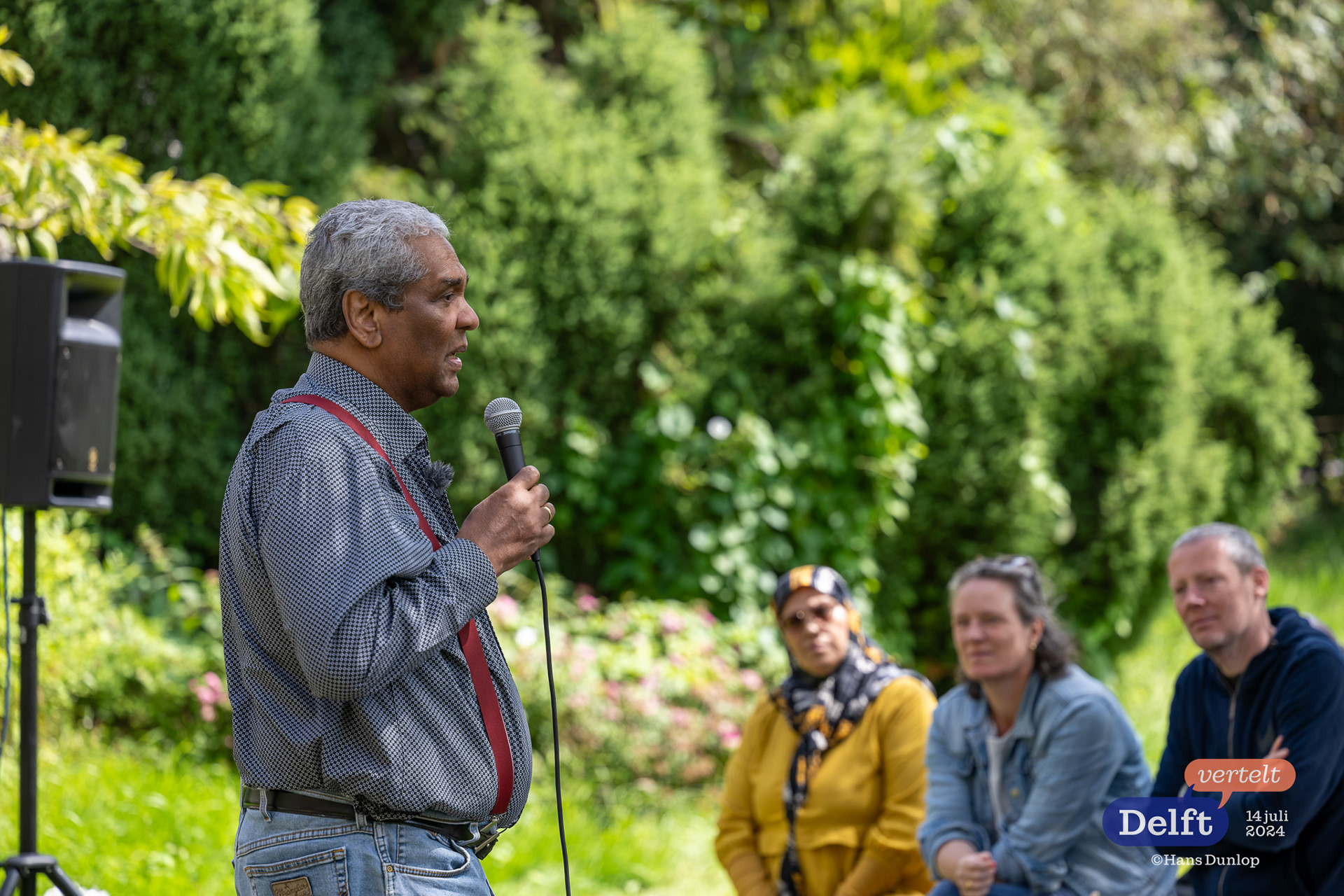 Delft Vertelt, editie 31 op14 juli 2024 in de tuin van Abtswoude Bloeit met: Monireh; Fatma Sahin; Feico Dillema; Gerard Jellema; Glenn Weisz; Omar Wilati; Ric Berretty; Robinson Jouwe; Ahmad