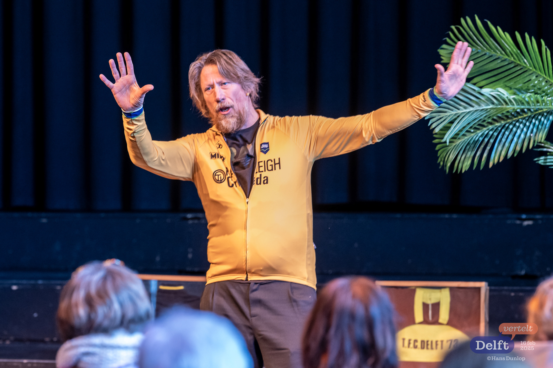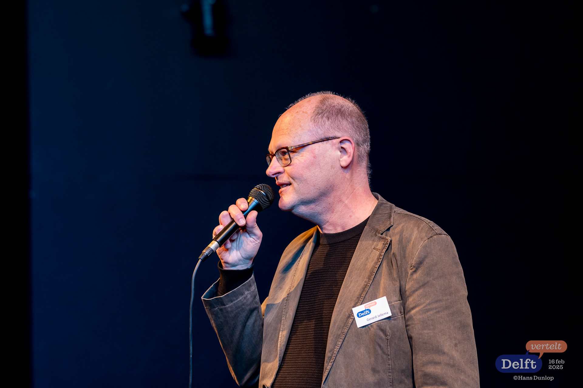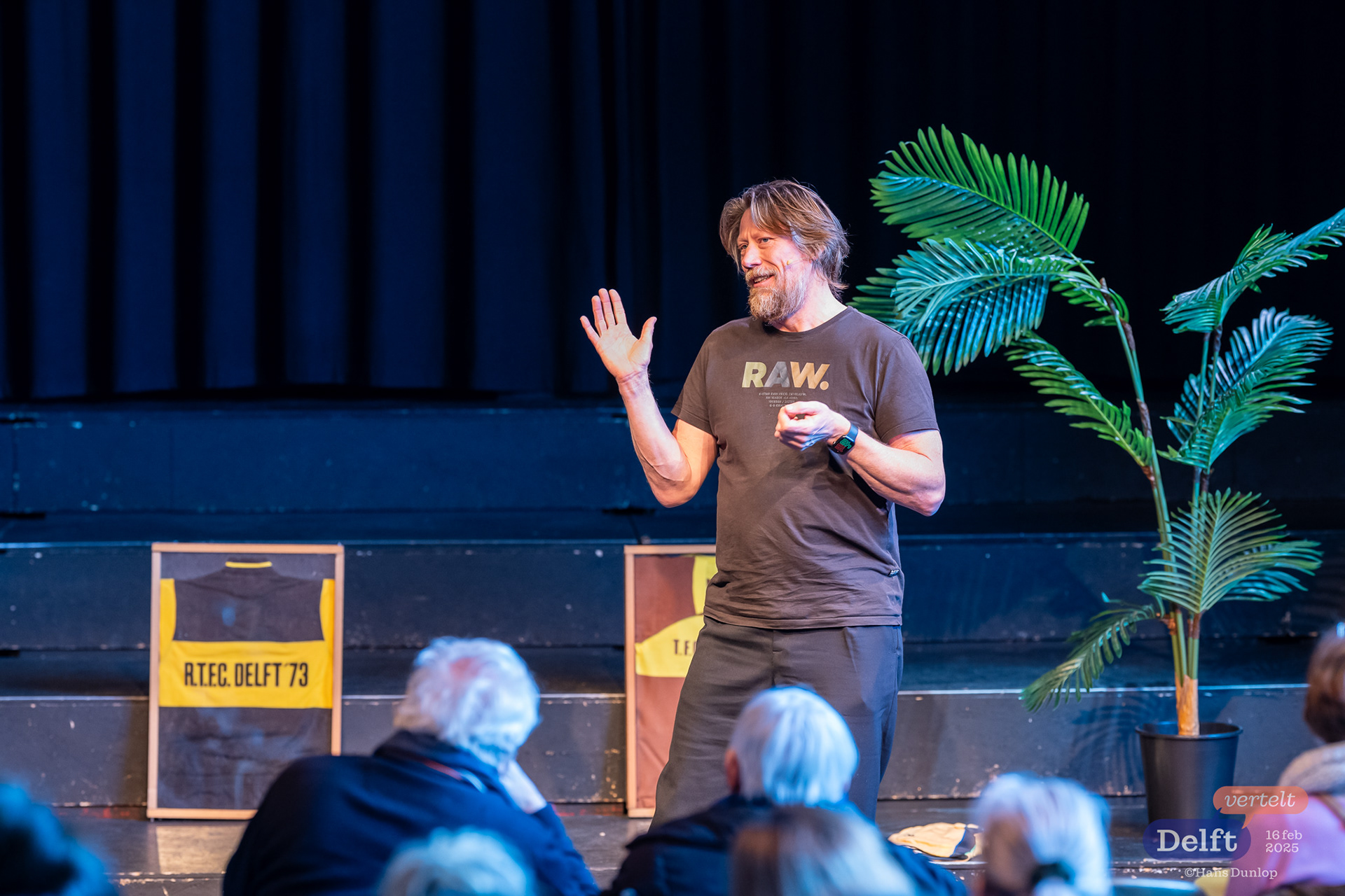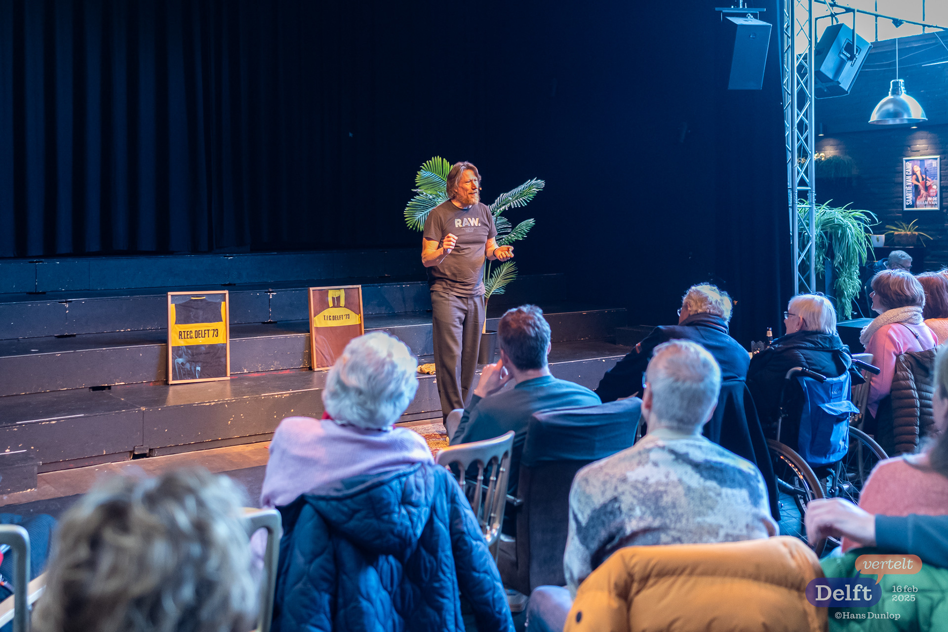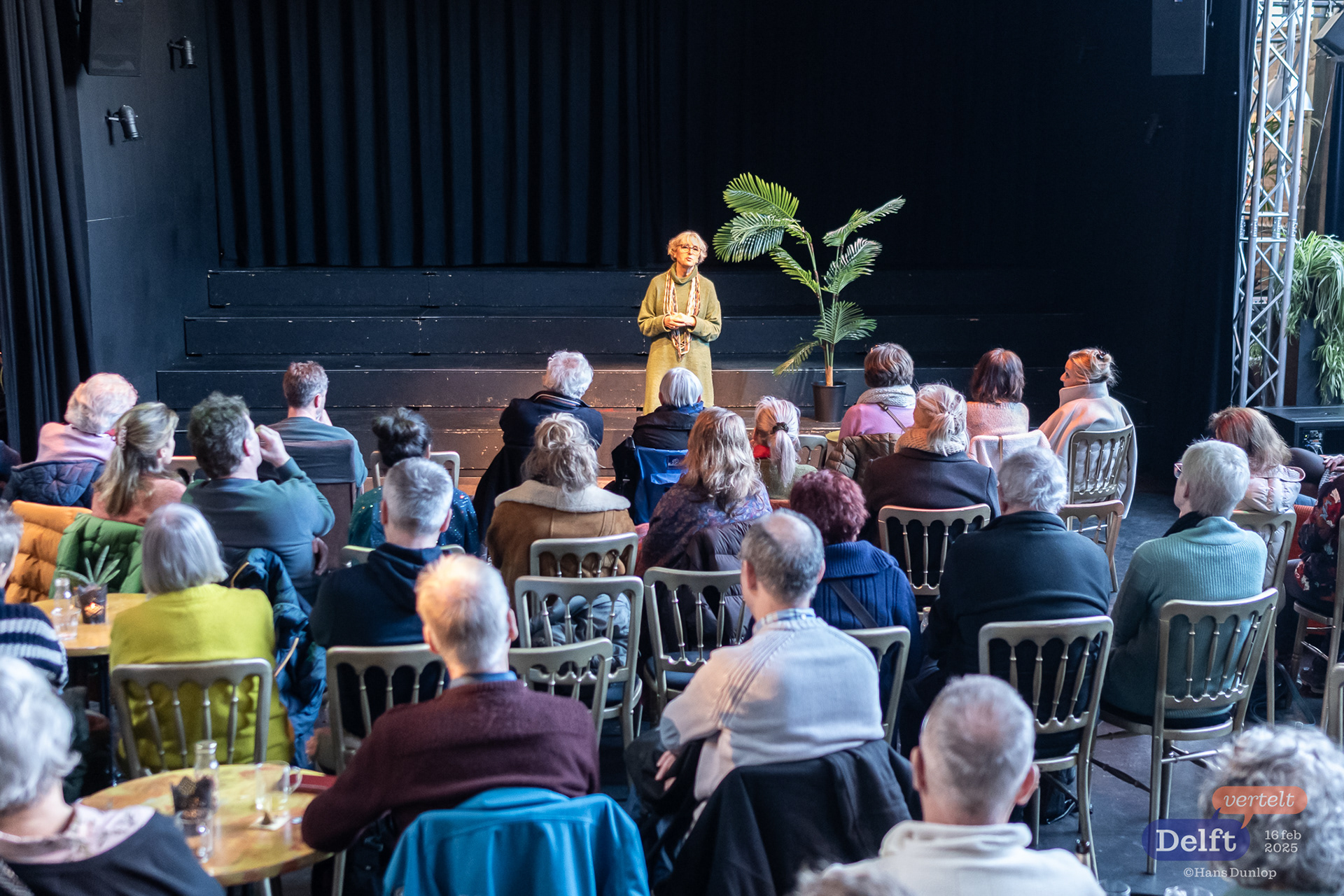 Delft Vertelt editie 34 op 16 februari 2025 in HAL015, met: Cees van Laren; Gerard Jellema; Ida Bastiaansen; Loda Stikkelman; Luca Warmer; Martine Muller; Rob Lenting; Ton & Ida;