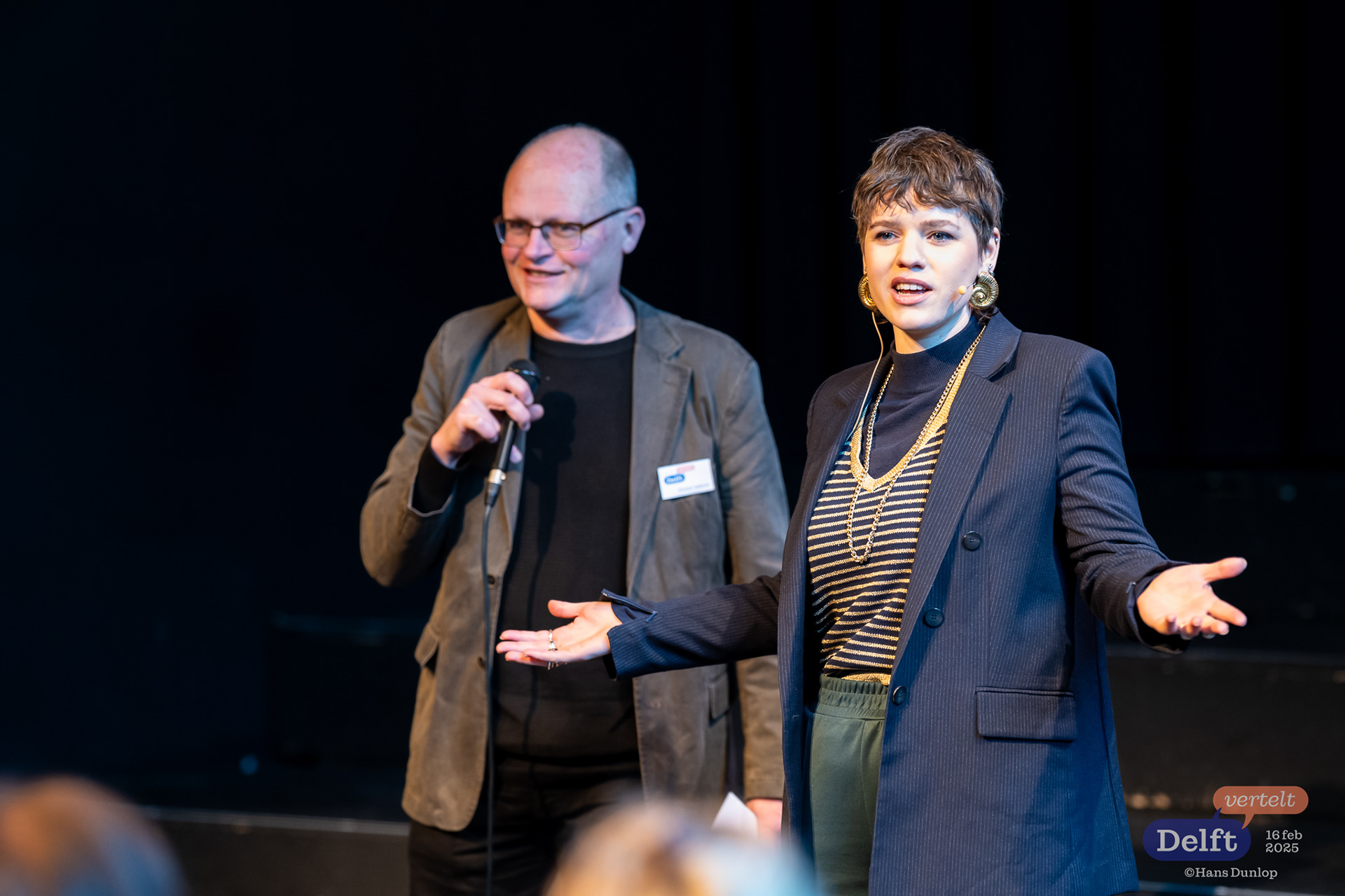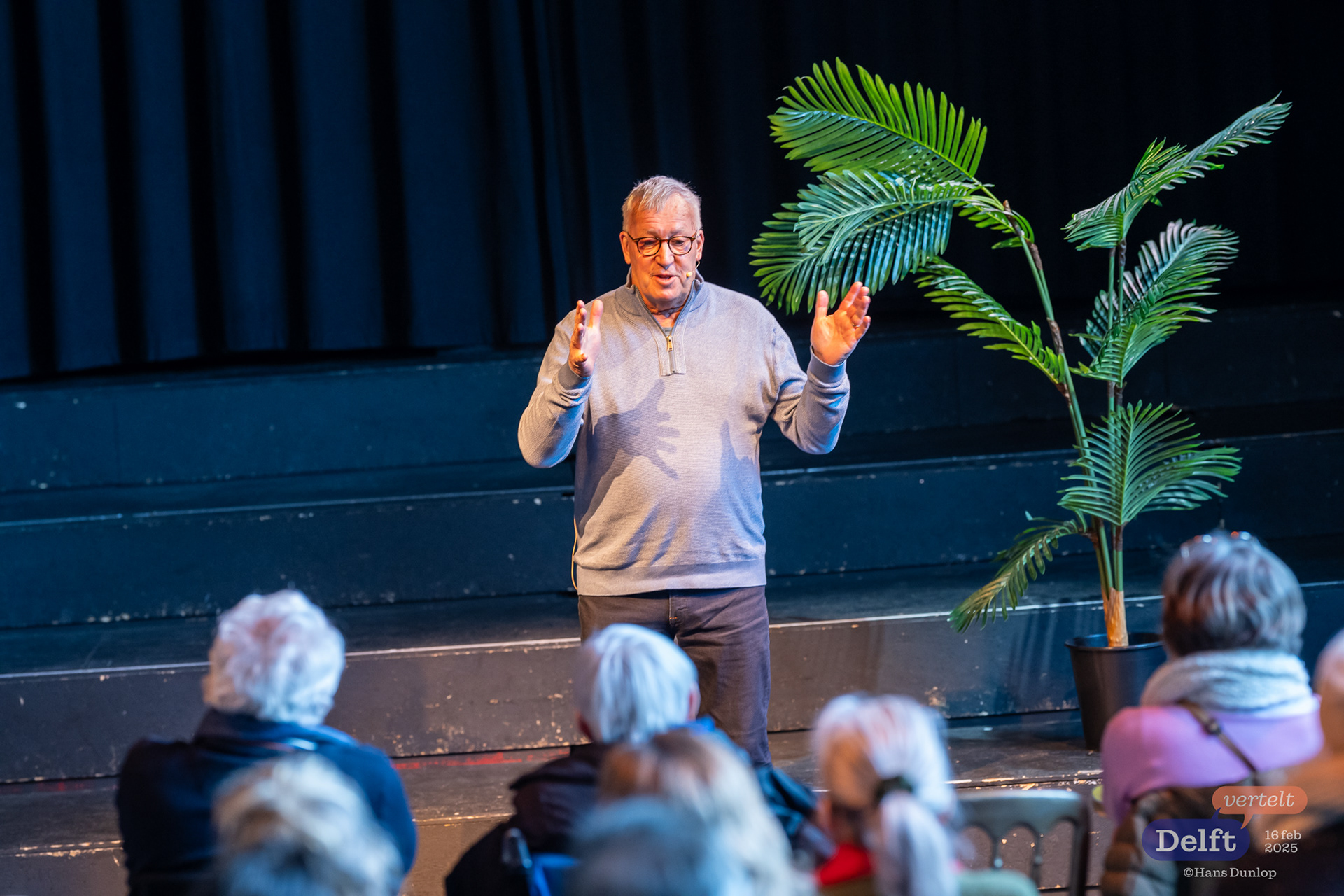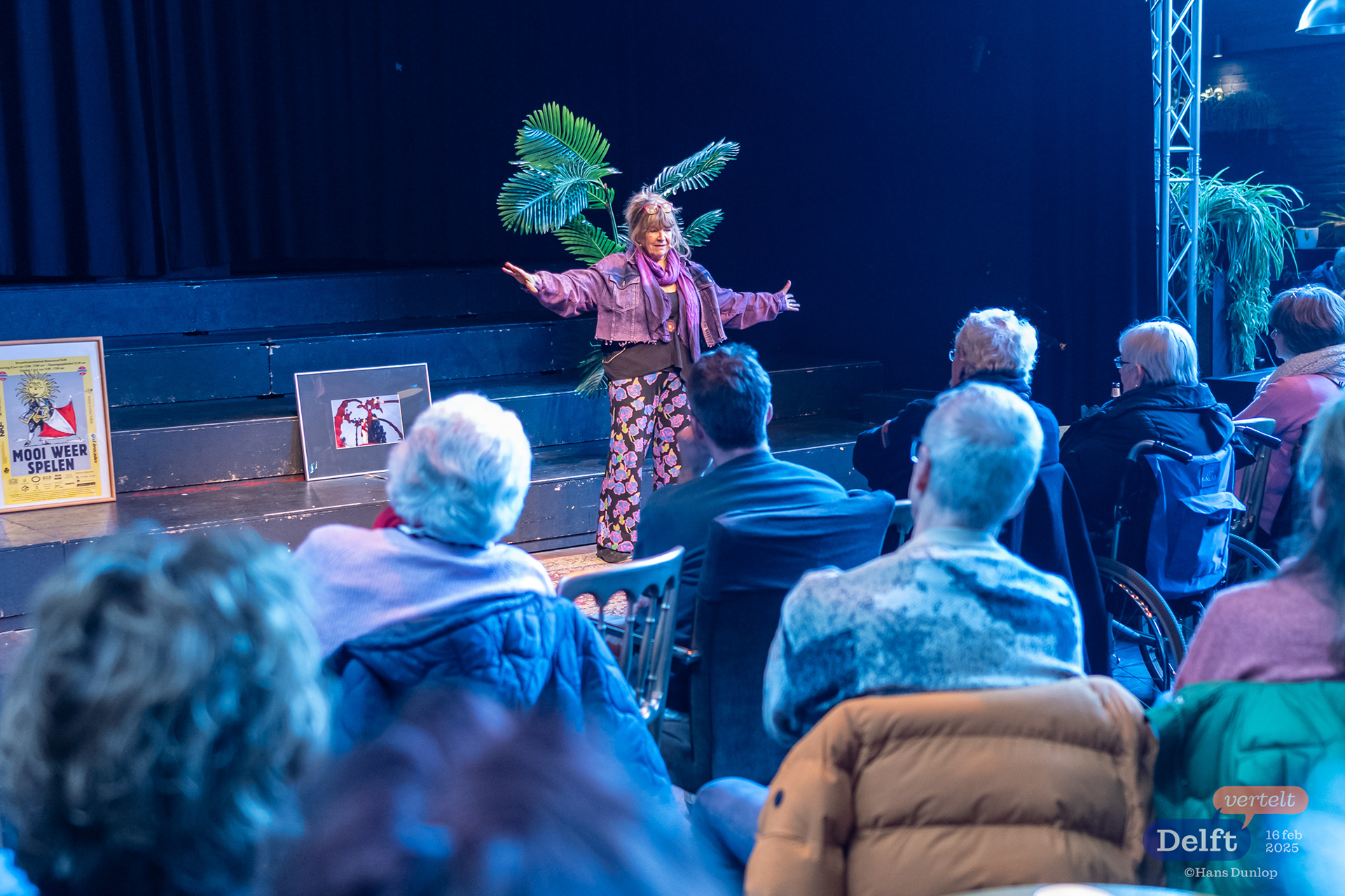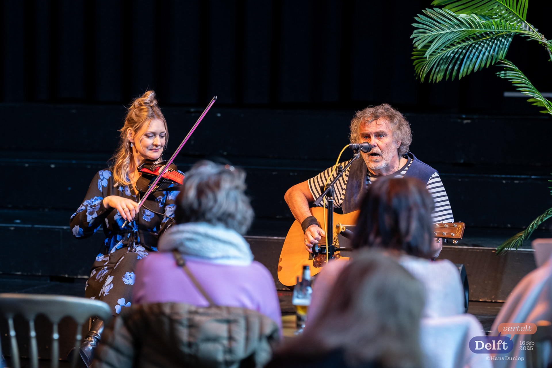 Delft Vertelt editie 34 op 16 februari 2025 in HAL015, met: Cees van Laren; Gerard Jellema; Ida Bastiaansen; Loda Stikkelman; Luca Warmer; Martine Muller; Rob Lenting; Ton & Ida;