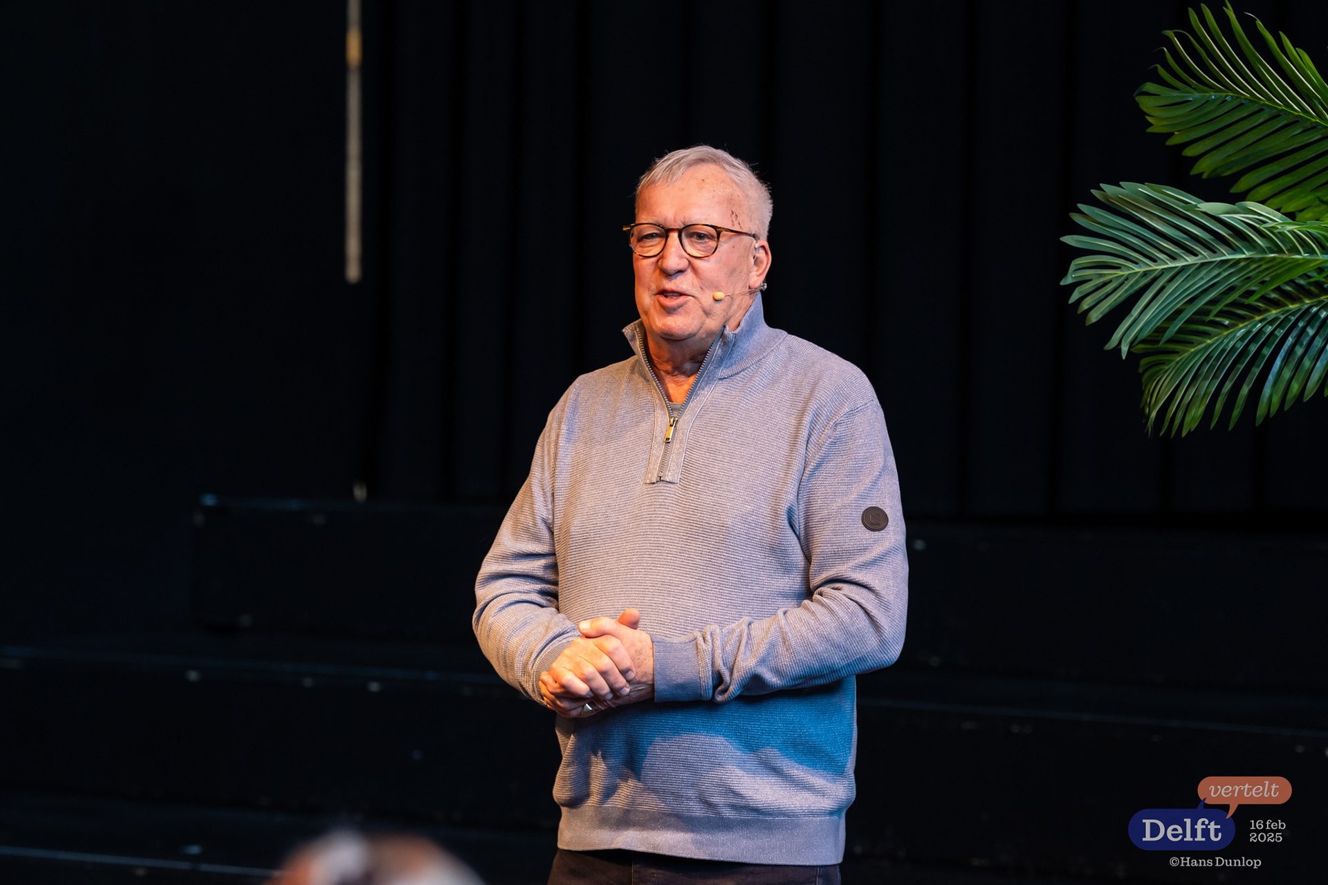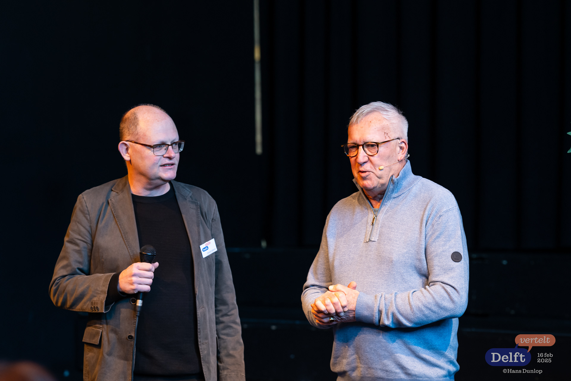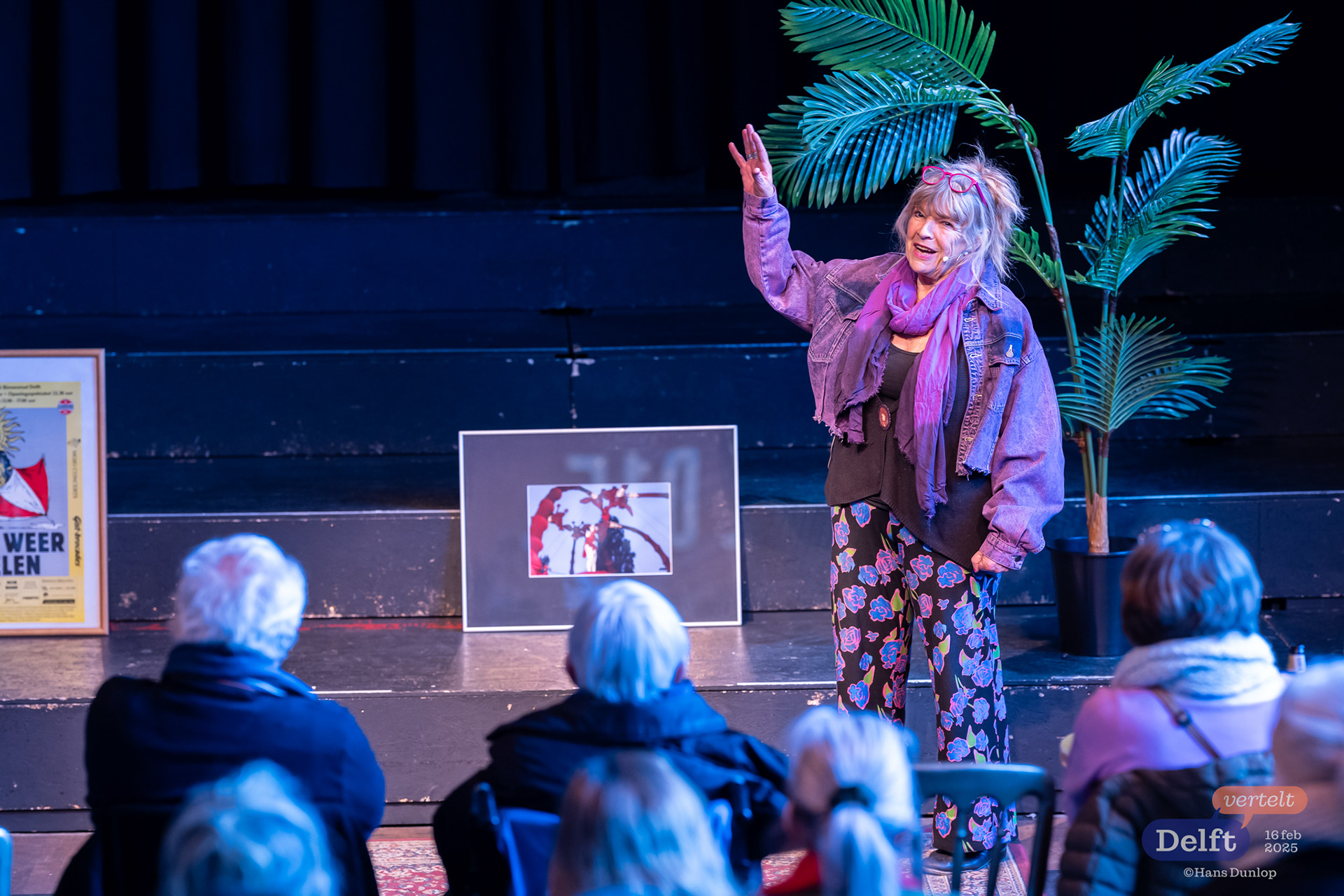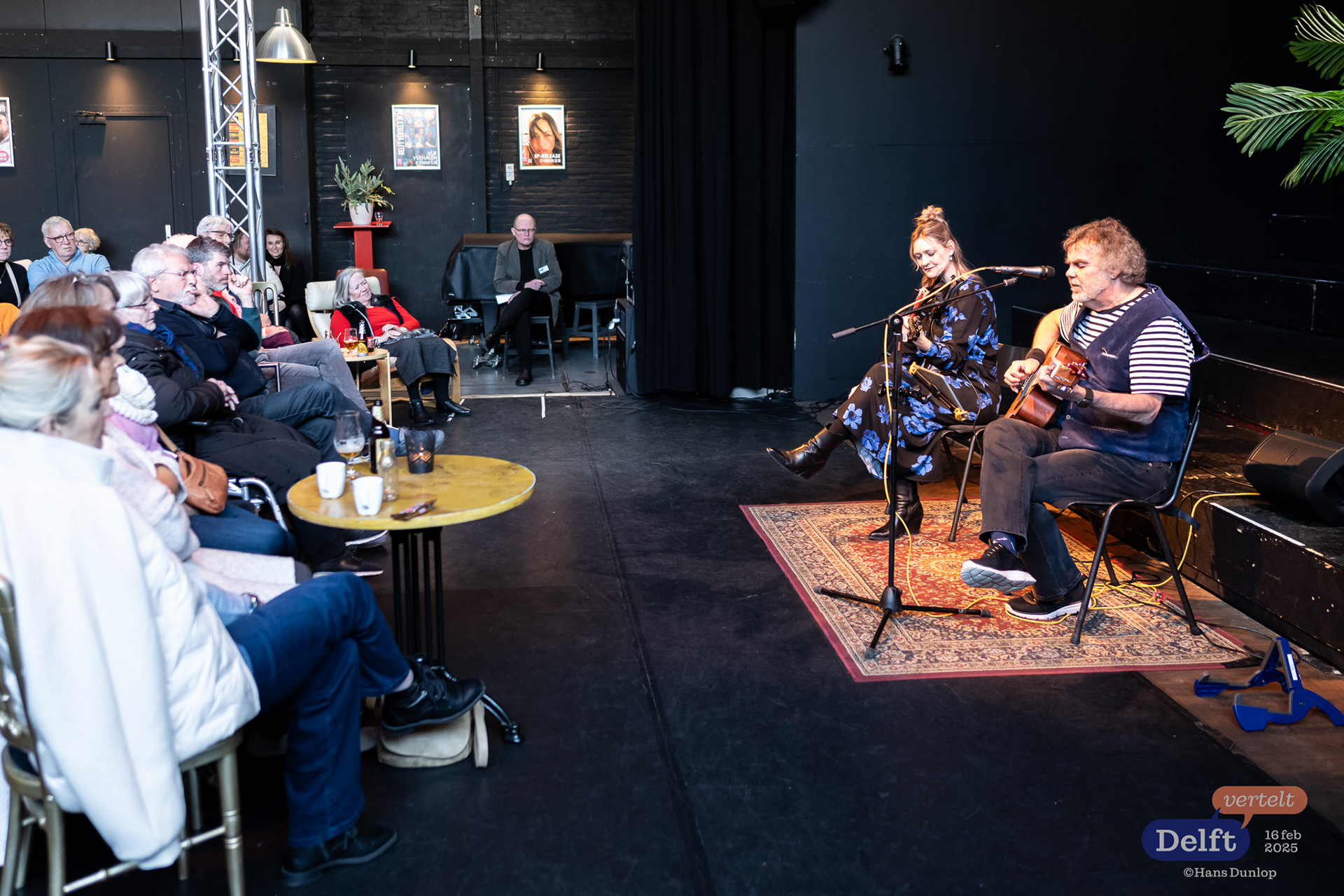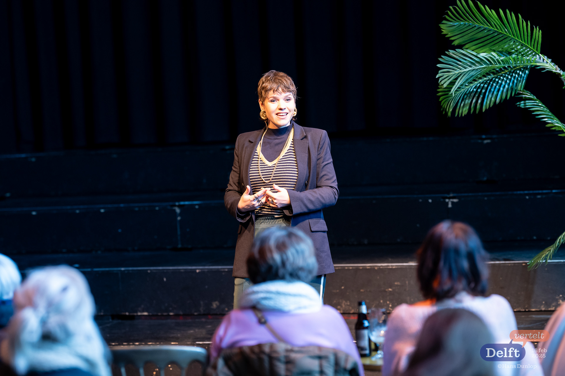 Delft Vertelt editie 34 op 16 februari 2025 in HAL015, met: Cees van Laren; Gerard Jellema; Ida Bastiaansen; Loda Stikkelman; Luca Warmer; Martine Muller; Rob Lenting; Ton & Ida;