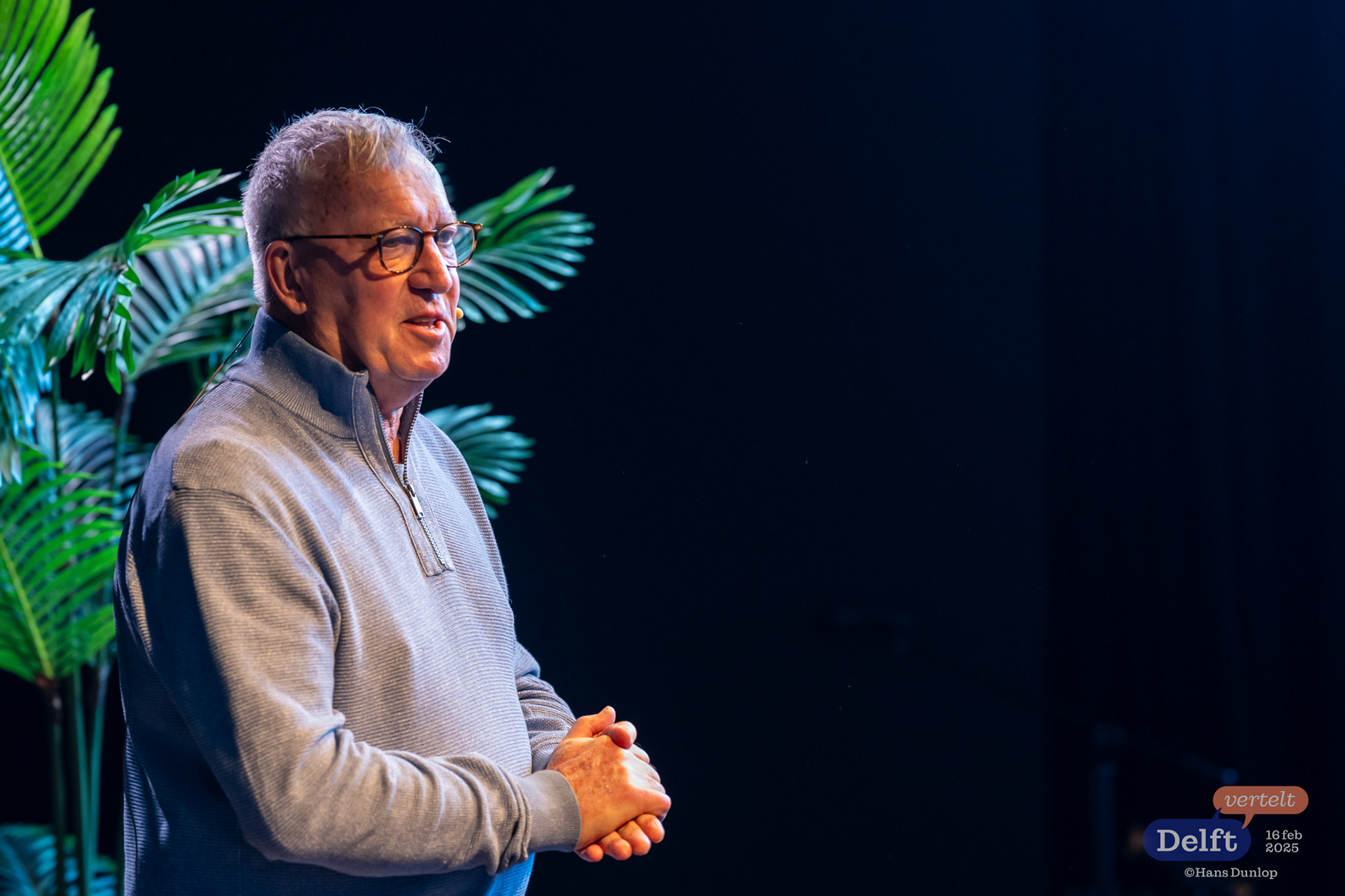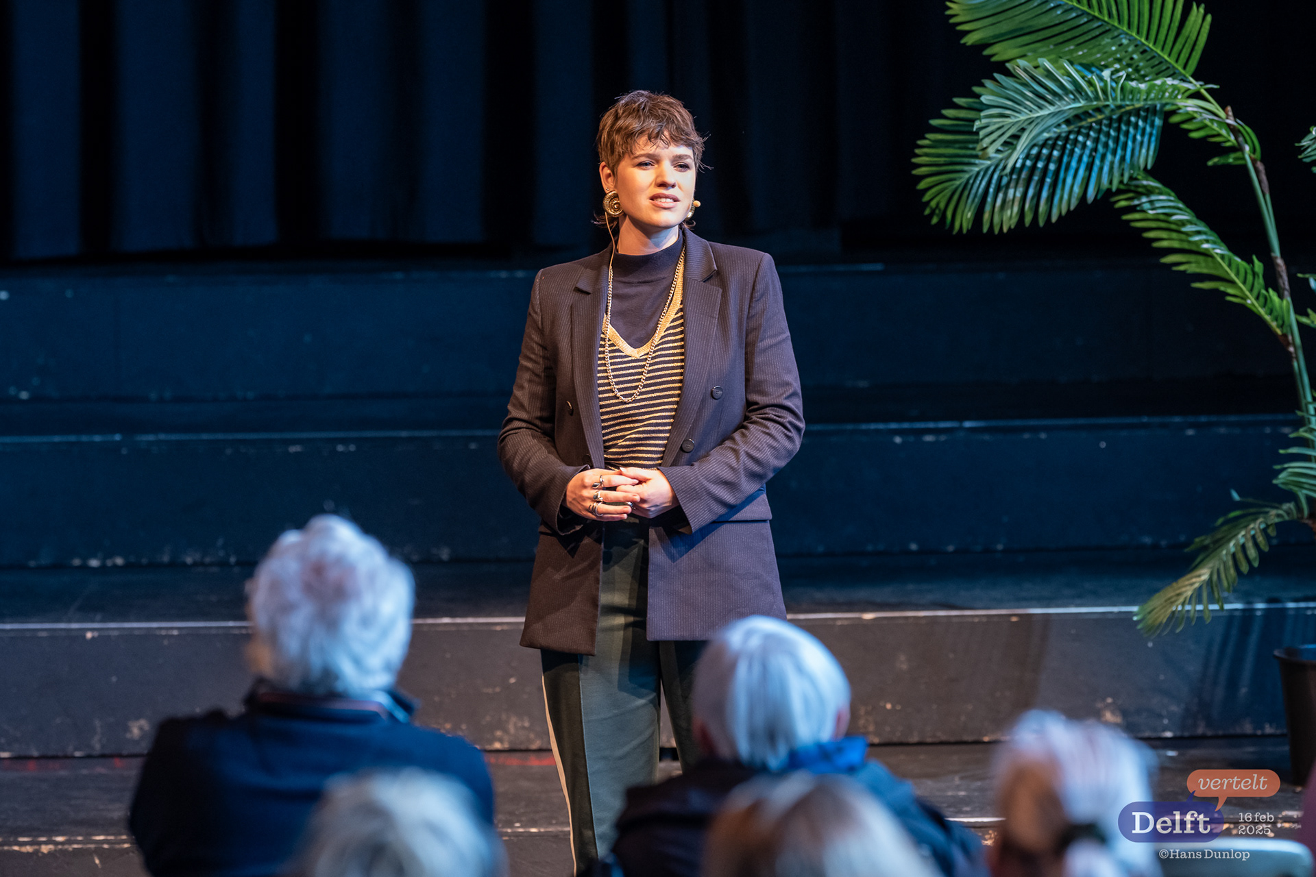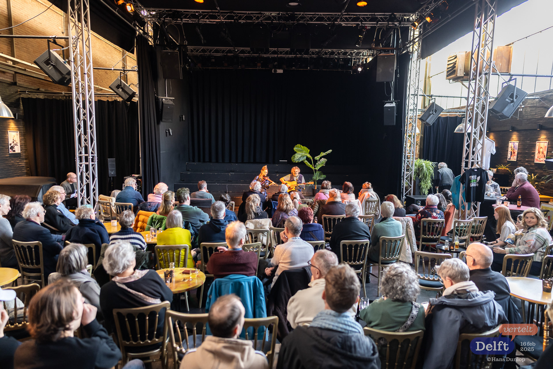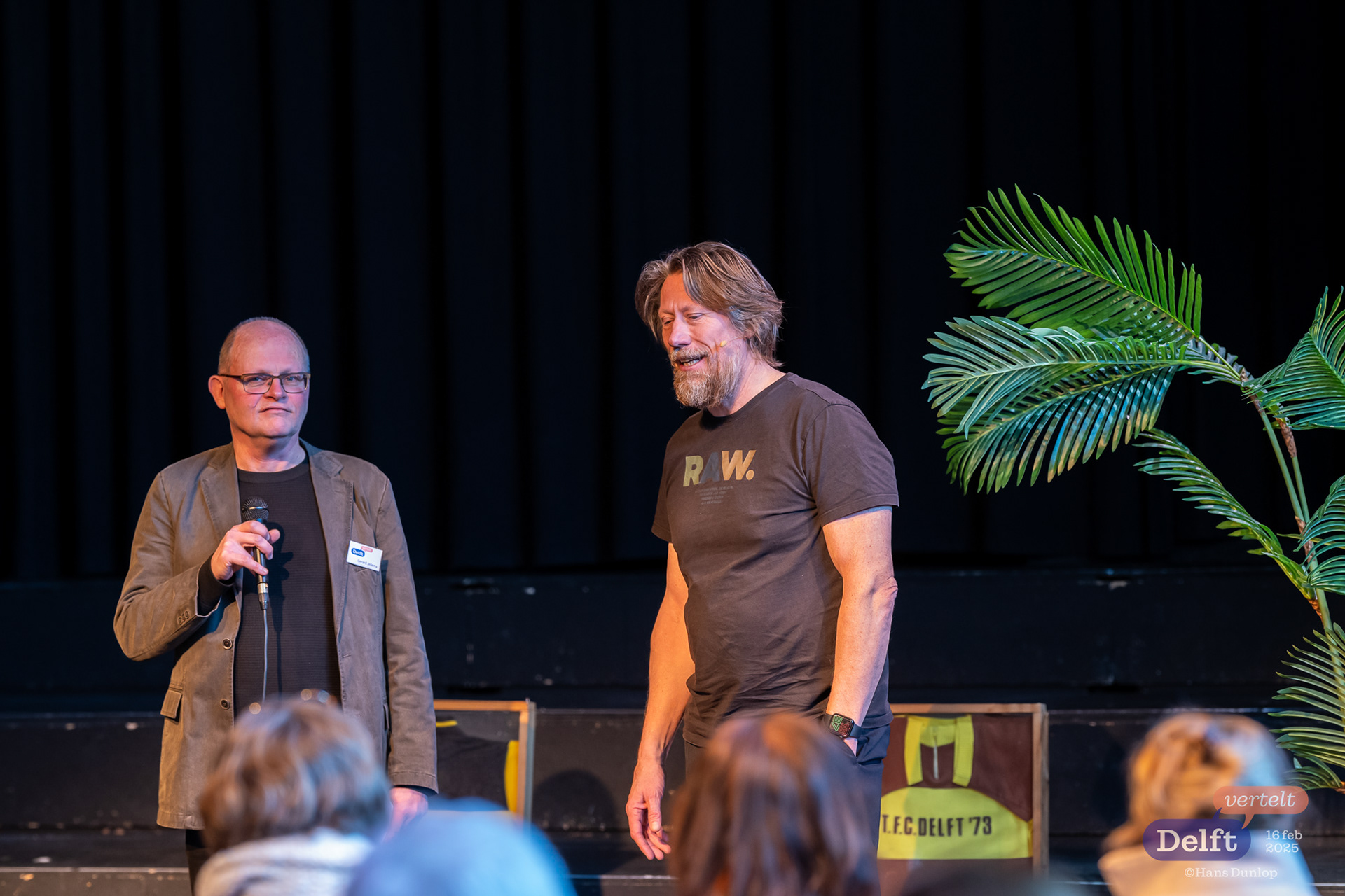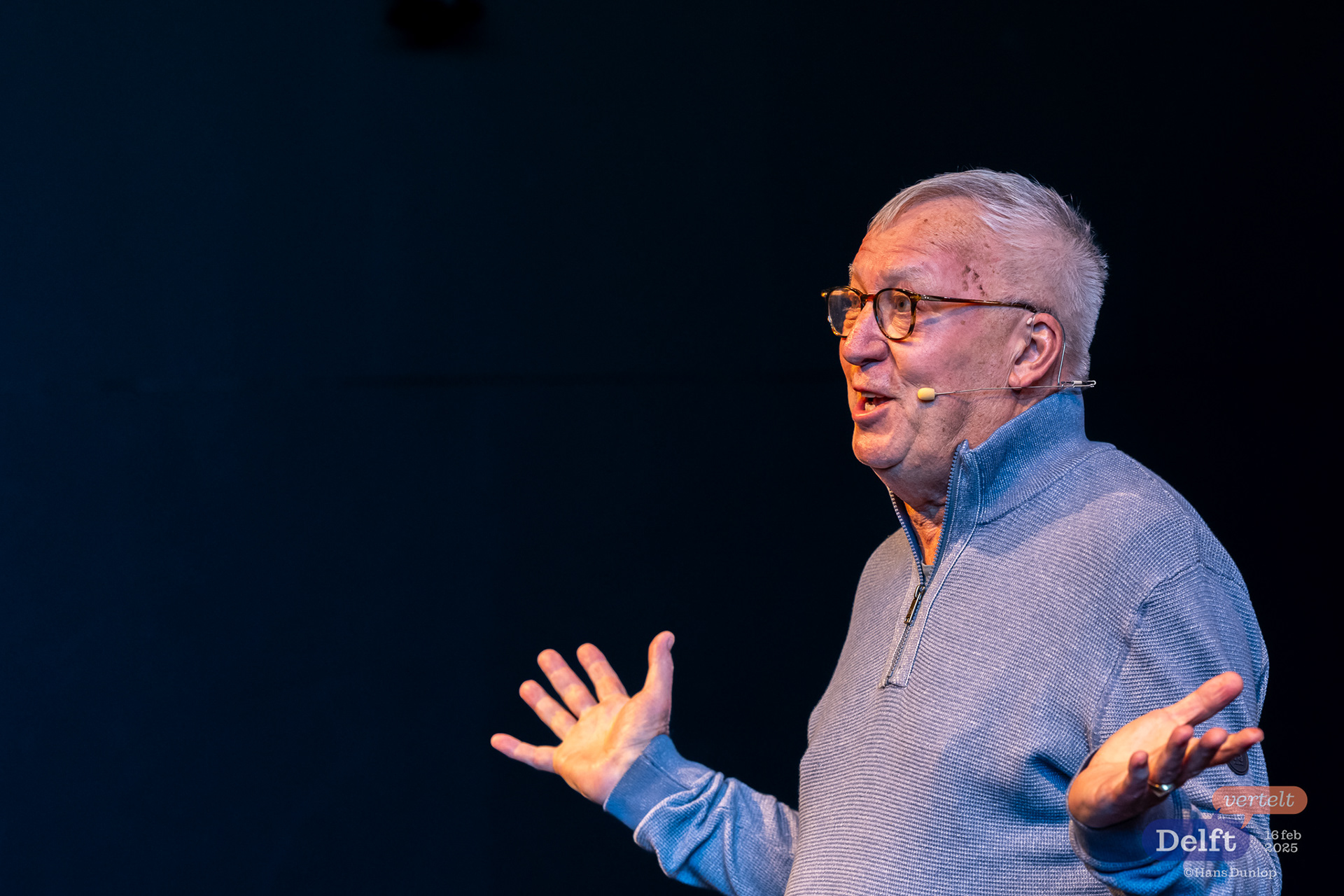 Delft Vertelt editie 34 op 16 februari 2025 in HAL015, met: Cees van Laren; Gerard Jellema; Ida Bastiaansen; Loda Stikkelman; Luca Warmer; Martine Muller; Rob Lenting; Ton & Ida;
