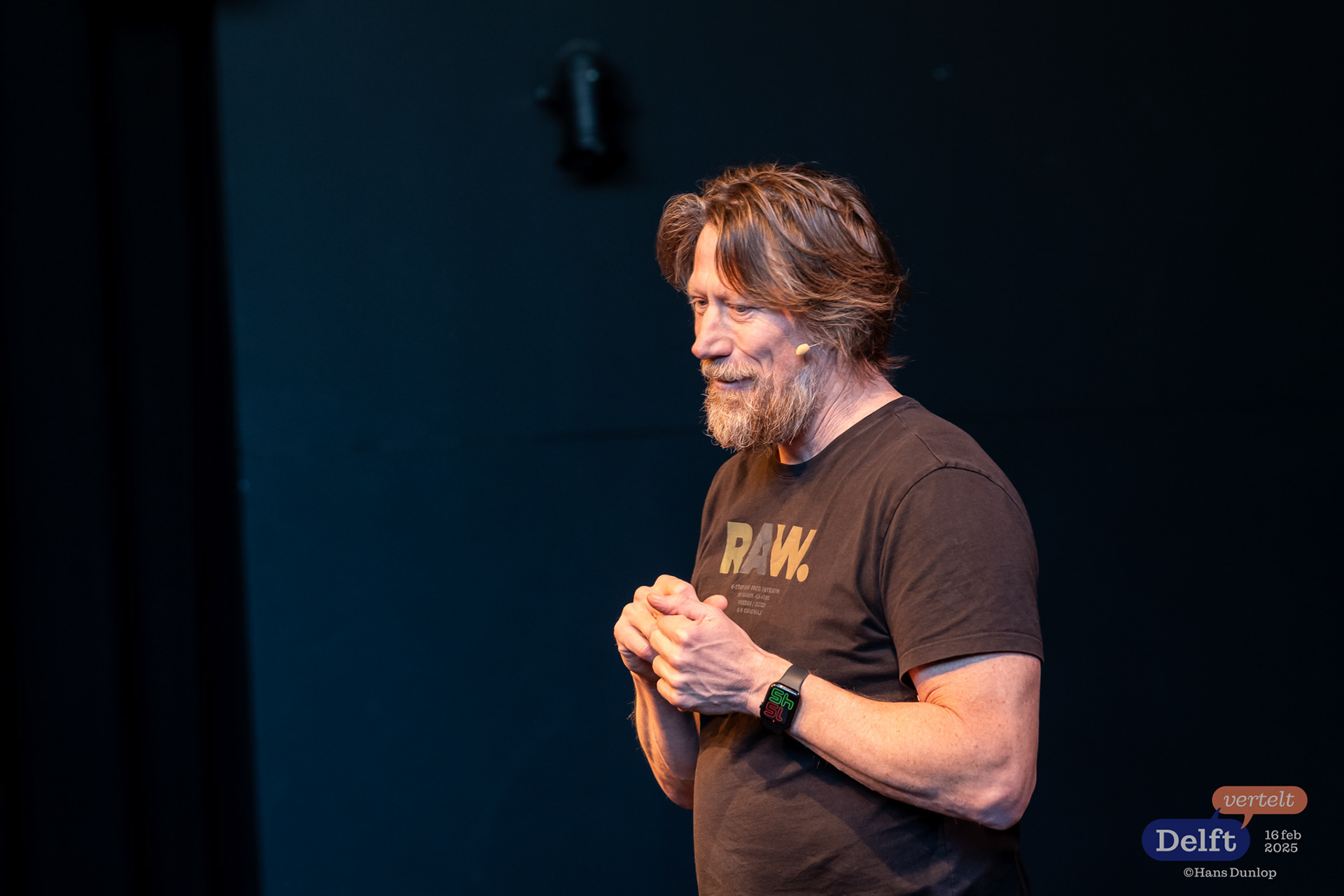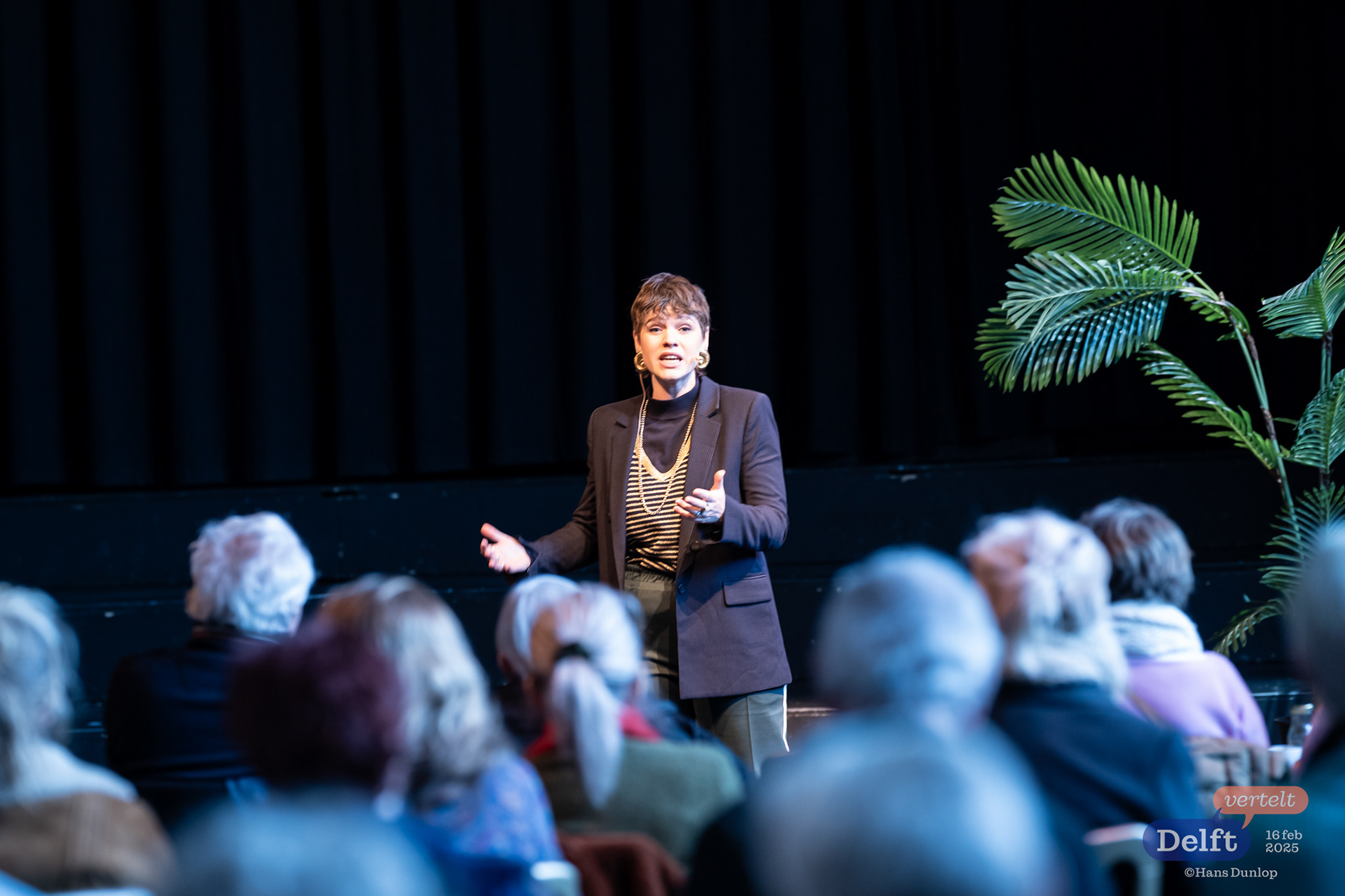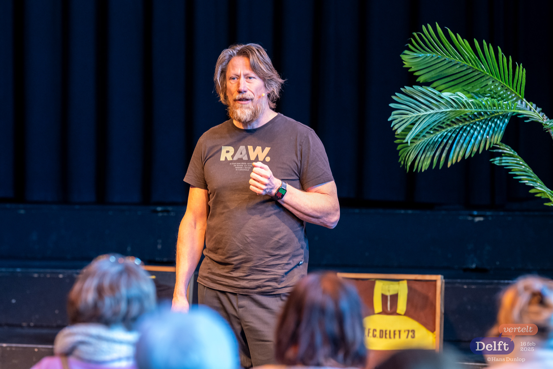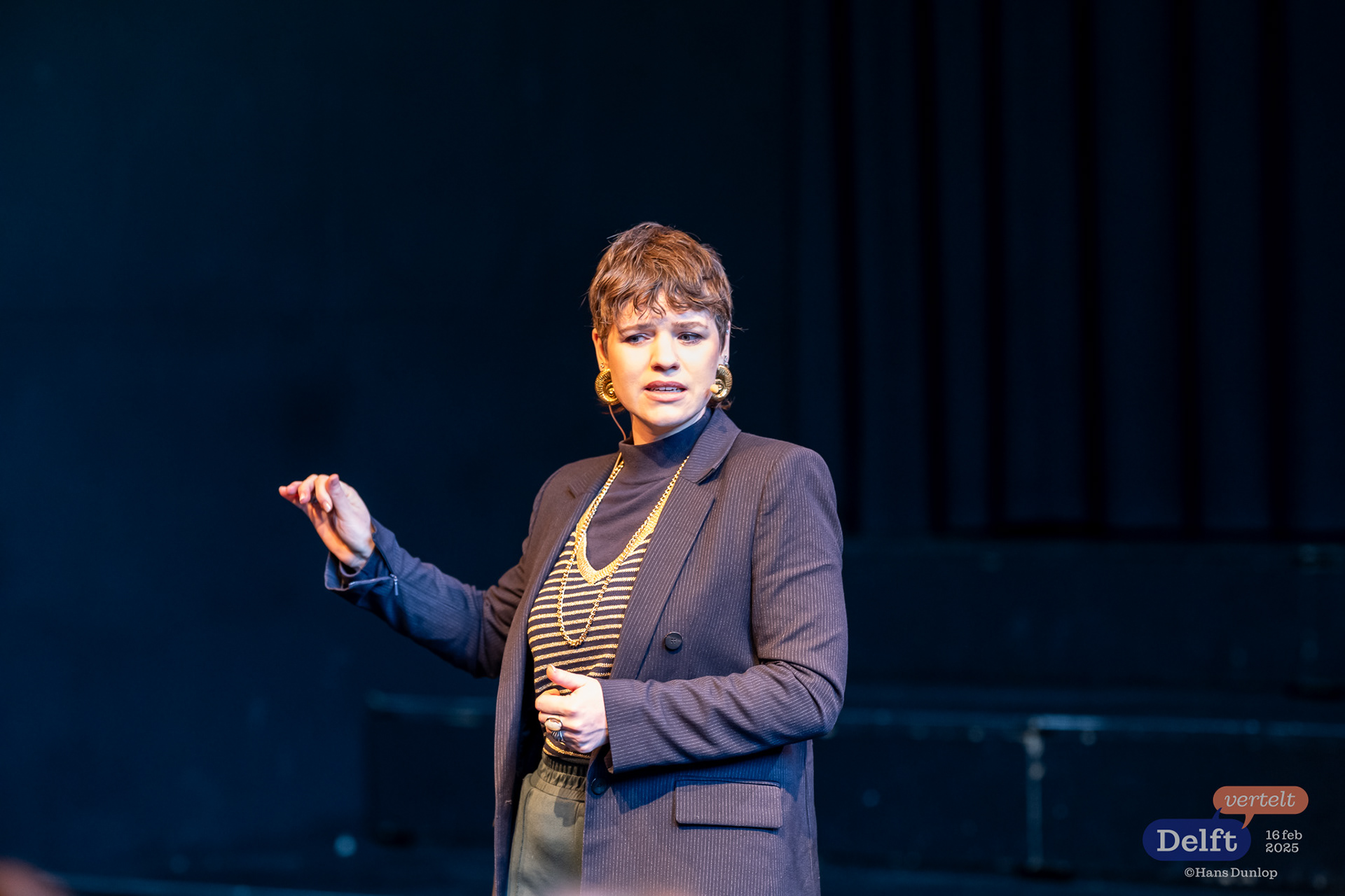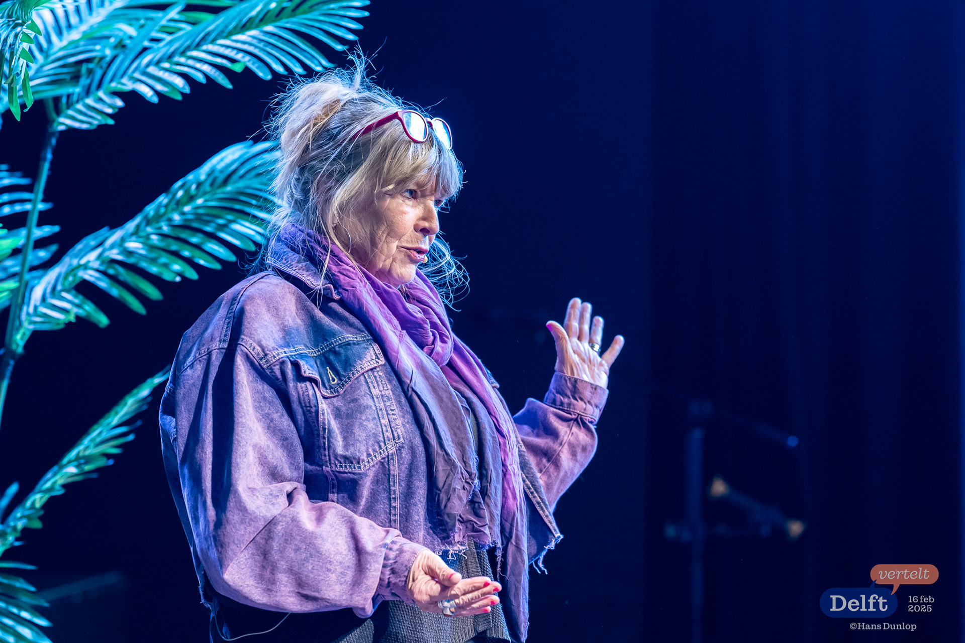 Delft Vertelt editie 34 op 16 februari 2025 in HAL015, met: Cees van Laren; Gerard Jellema; Ida Bastiaansen; Loda Stikkelman; Luca Warmer; Martine Muller; Rob Lenting; Ton & Ida;