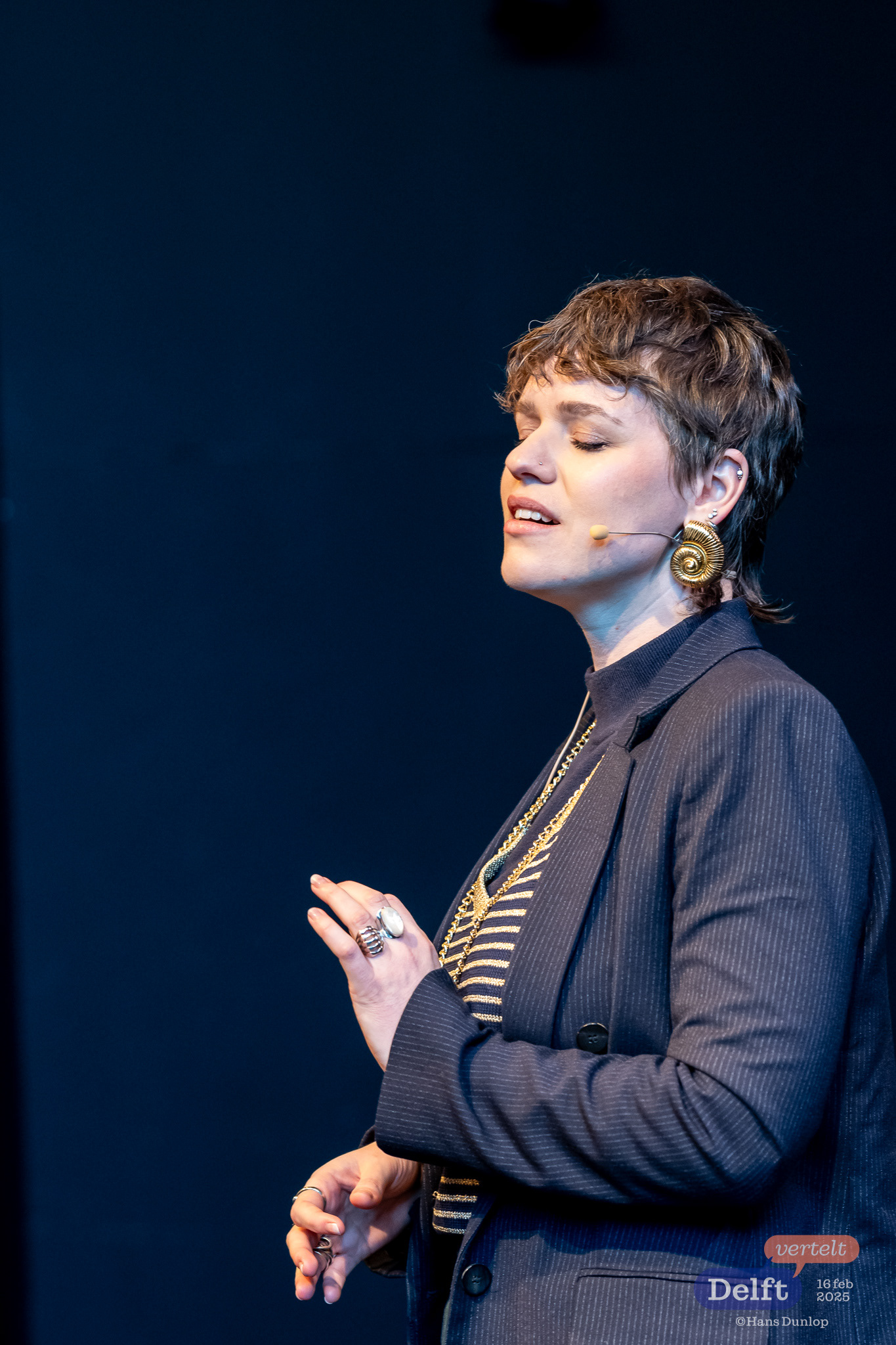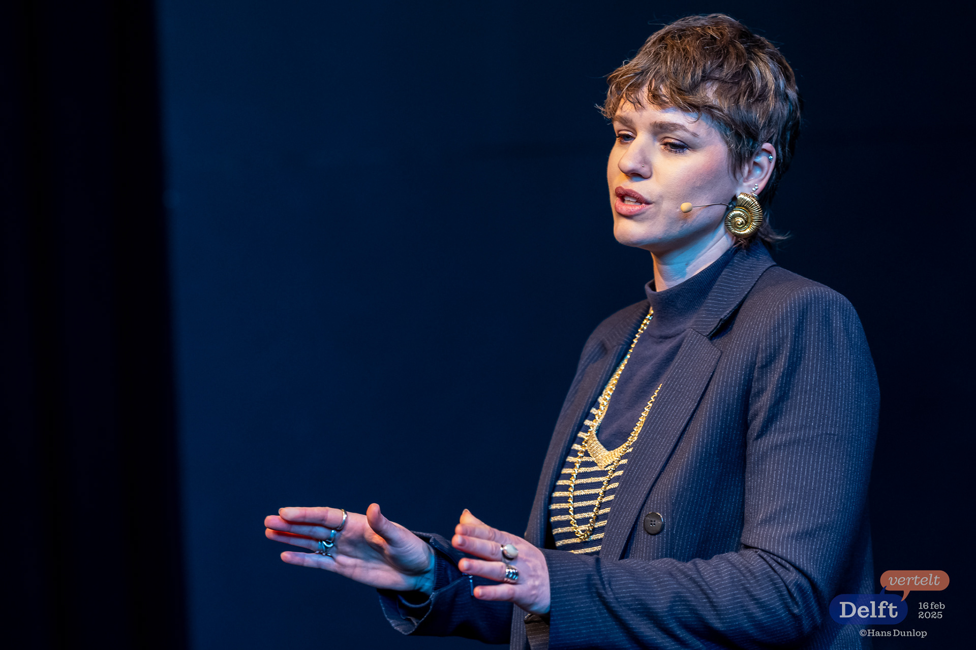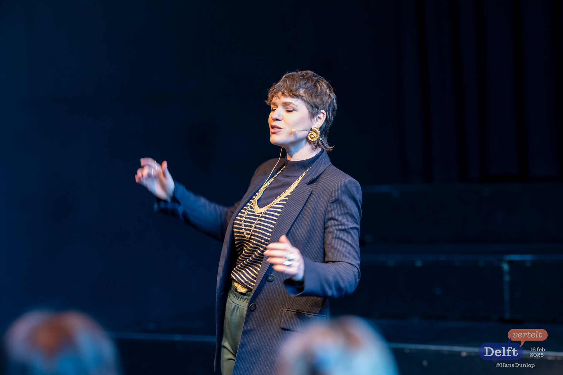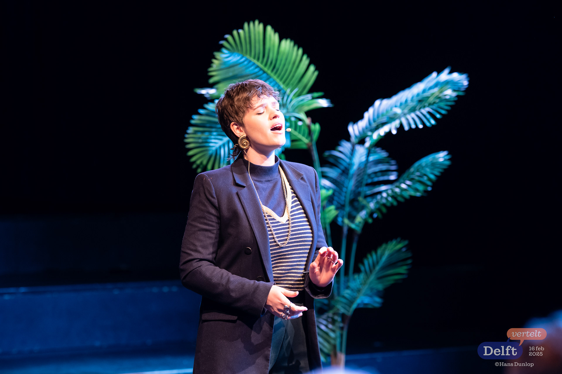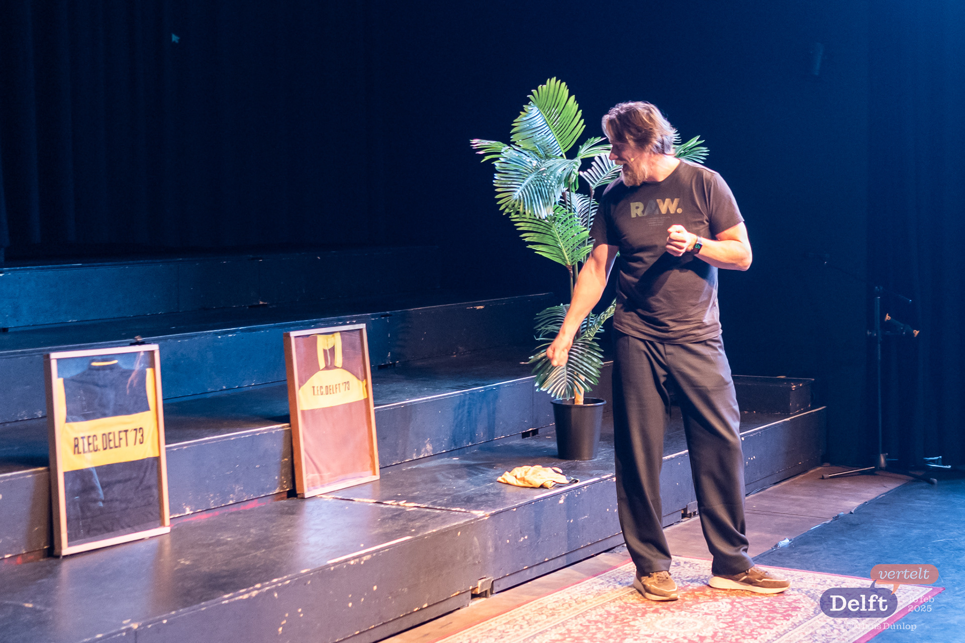Delft Vertelt editie 34 op 16 februari 2025 in HAL015, met: Cees van Laren; Gerard Jellema; Ida Bastiaansen; Loda Stikkelman; Luca Warmer; Martine Muller; Rob Lenting; Ton & Ida;