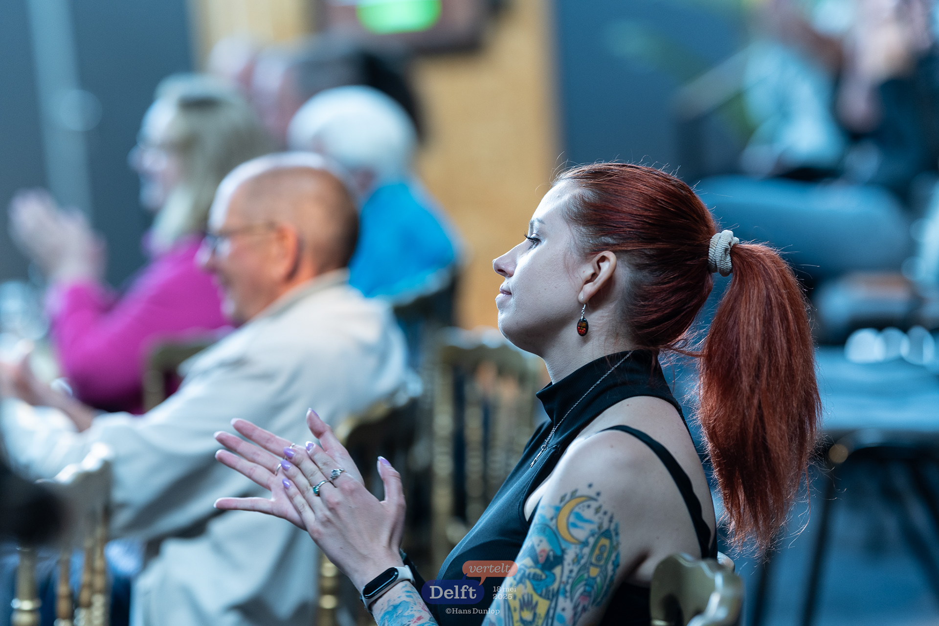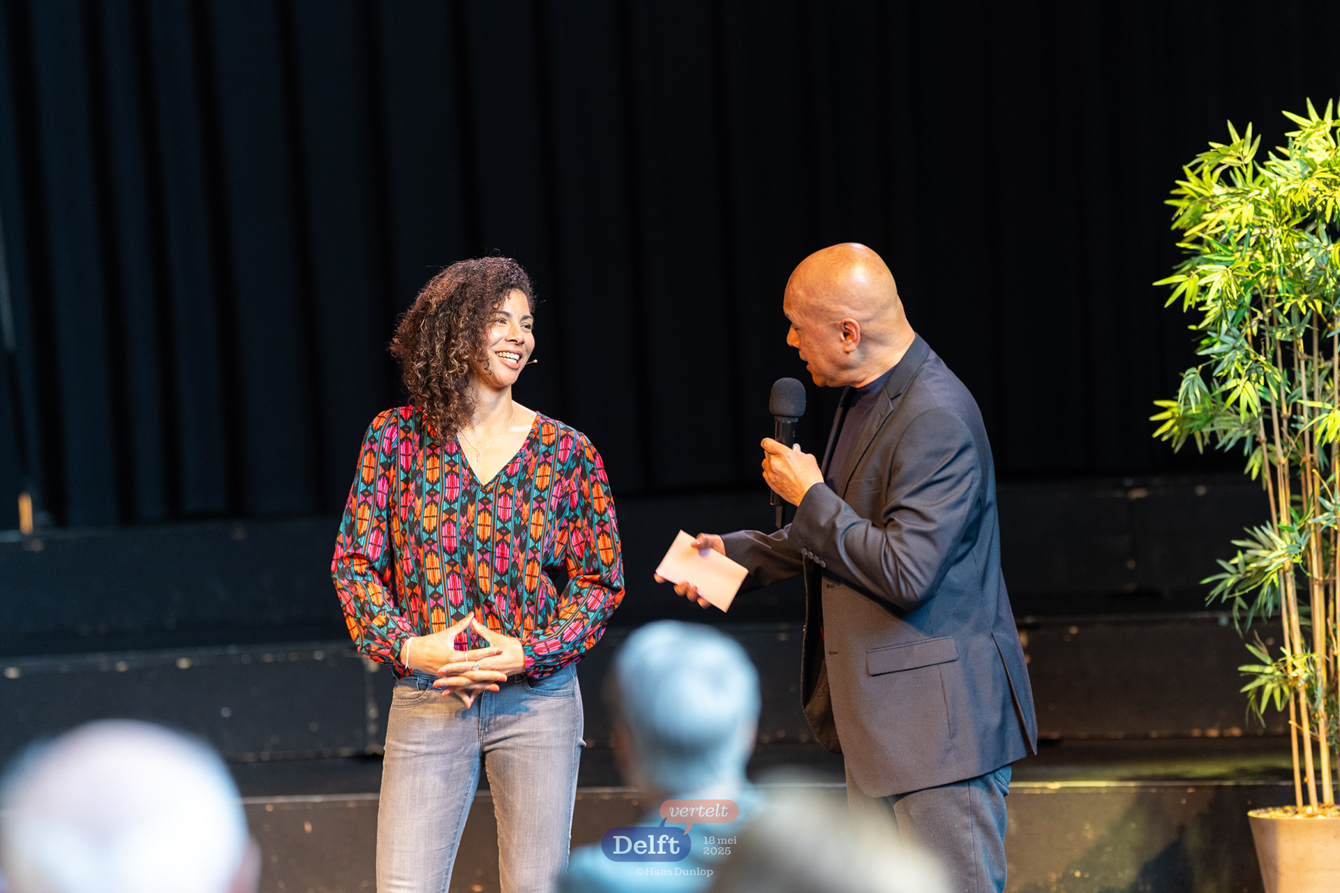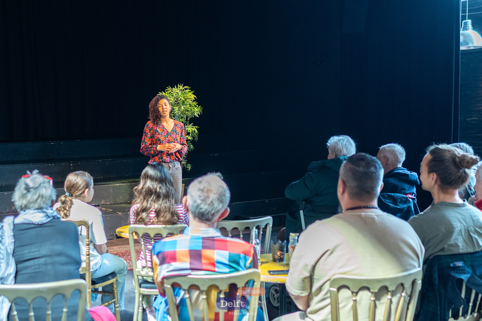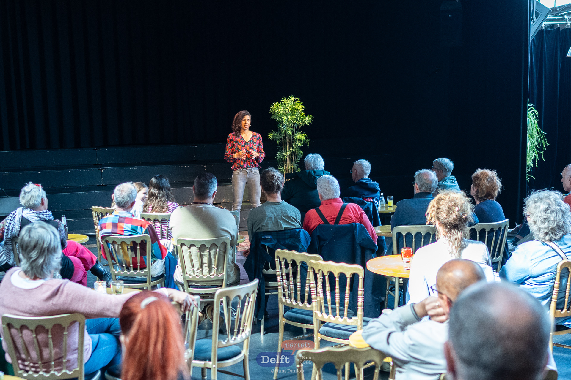 Delft Vertelt editie 35 op 18 met 2025 in HAL015 met: Suzanne Liem, Leonie Zweekhorst, Heera Dijk & Hamza Afghani, Les Artistes Triestes, Irinda de Groen en Hermine van Helden