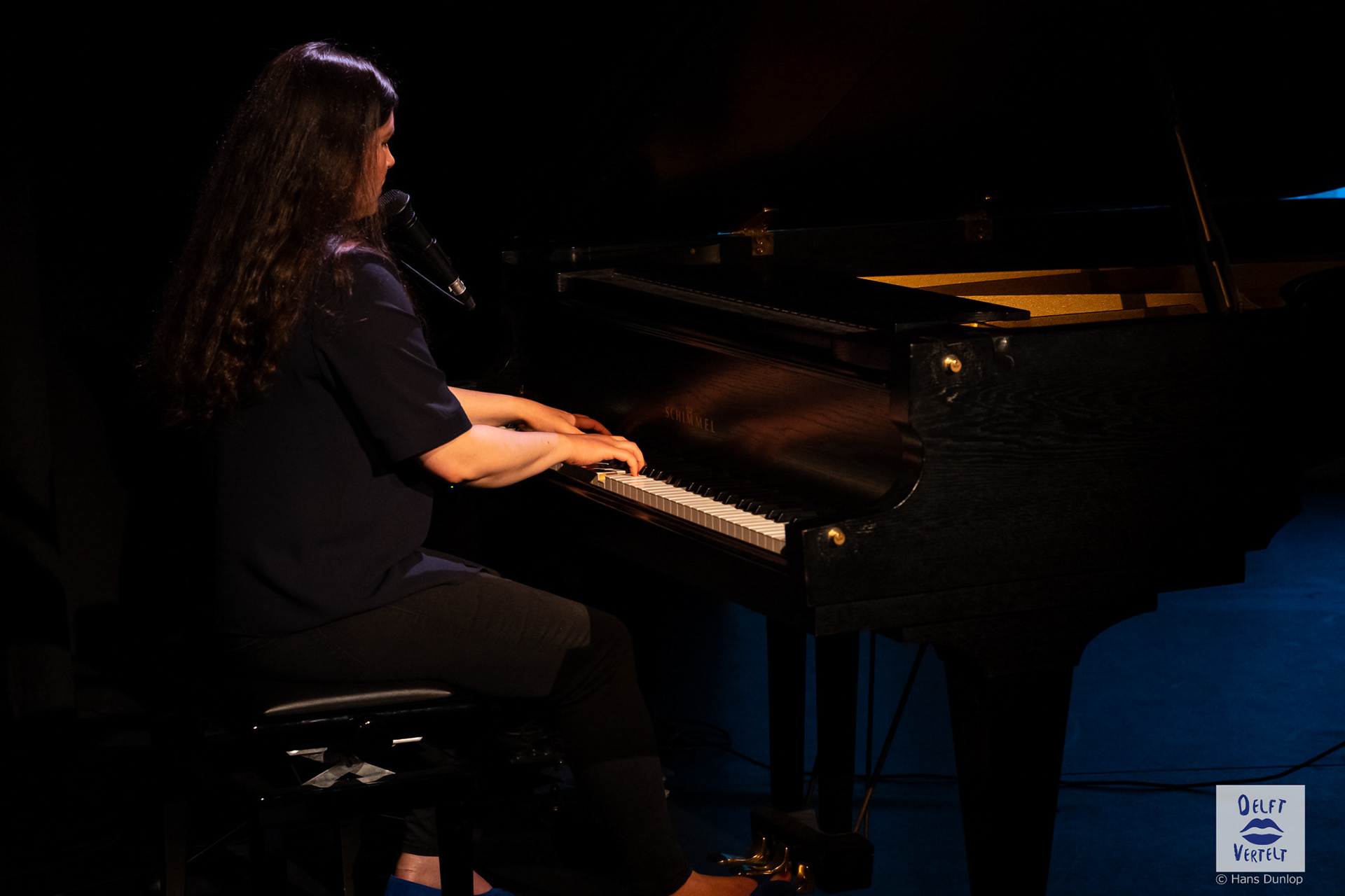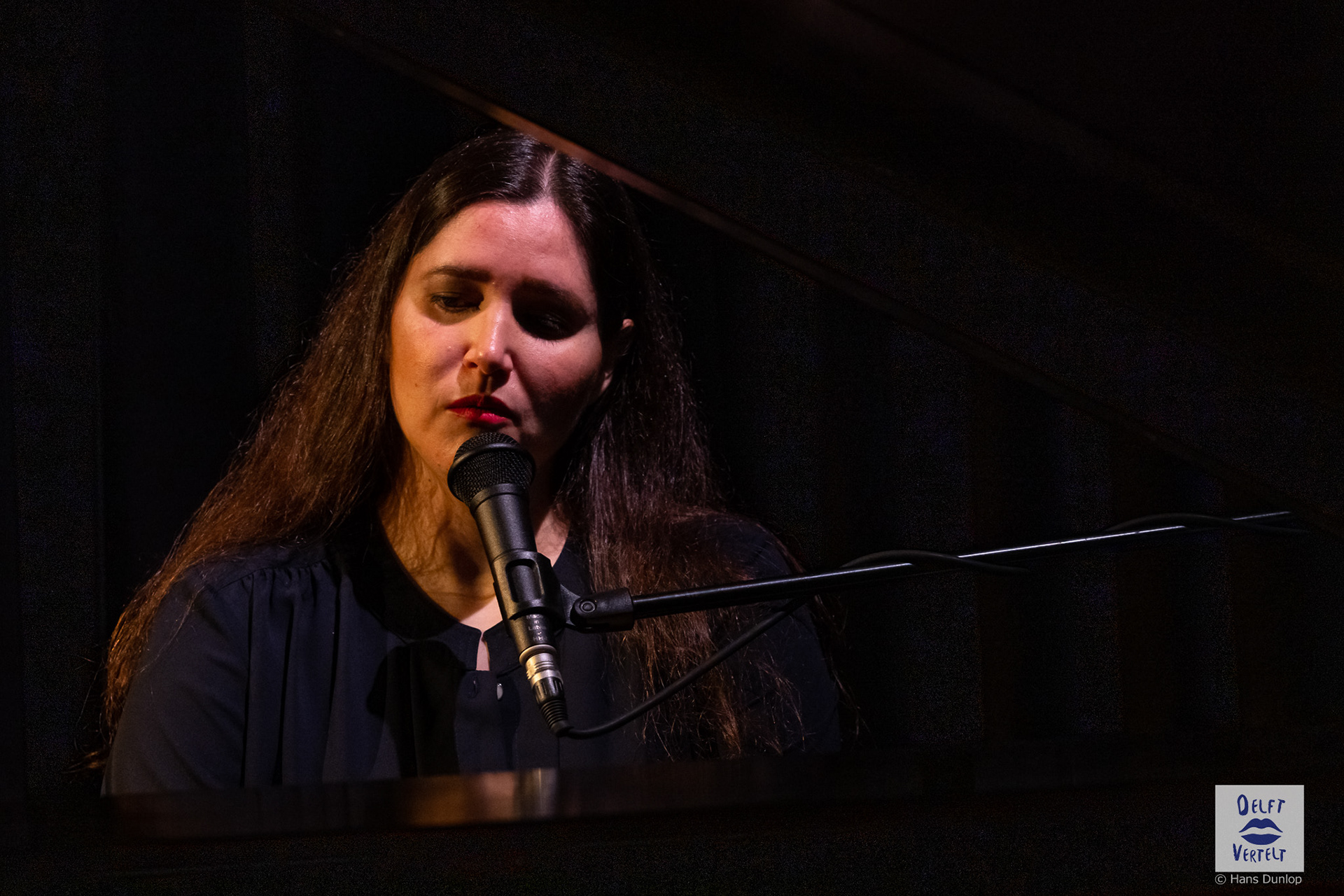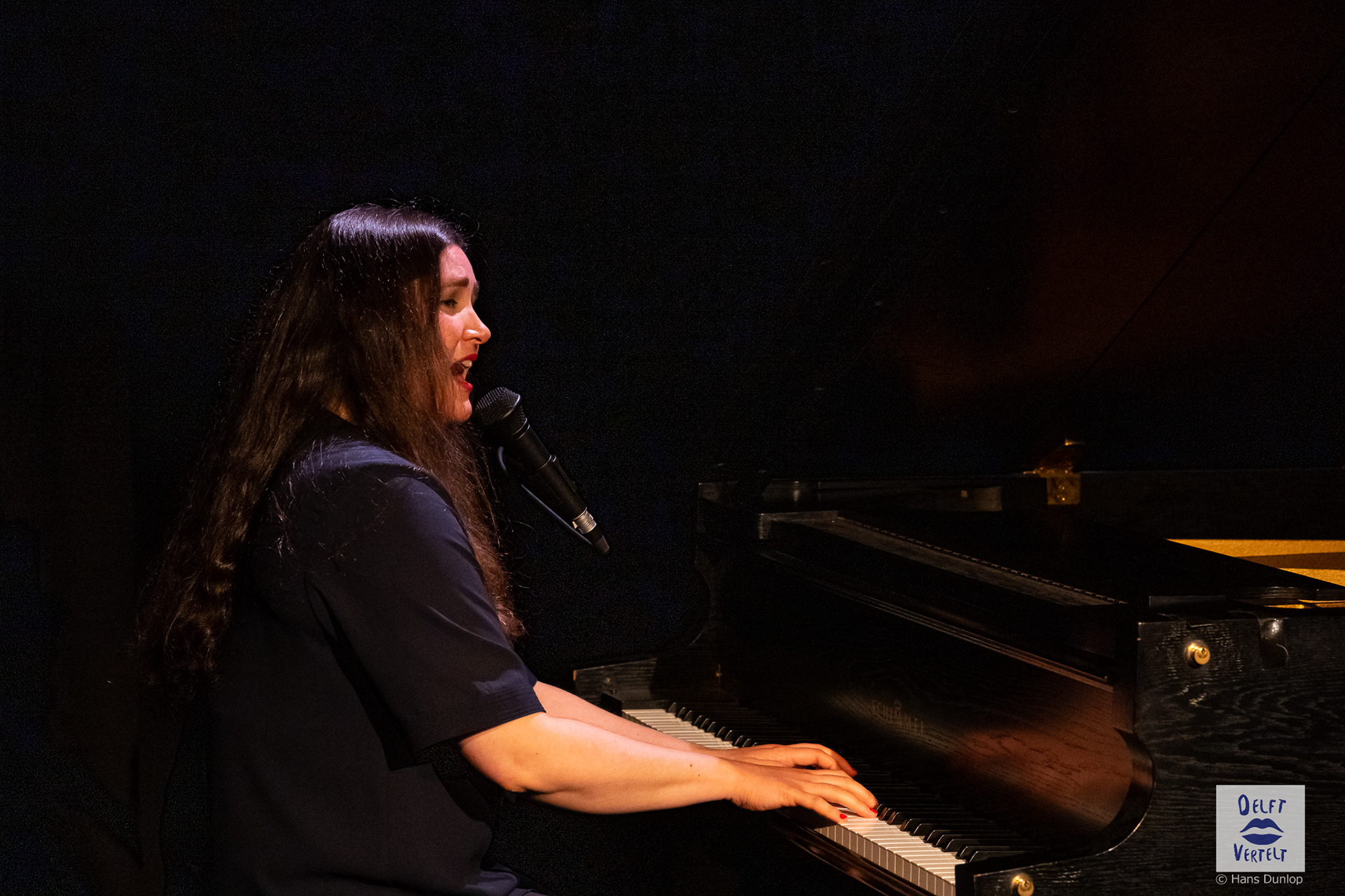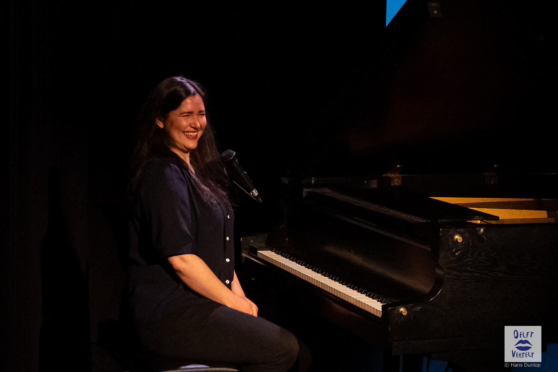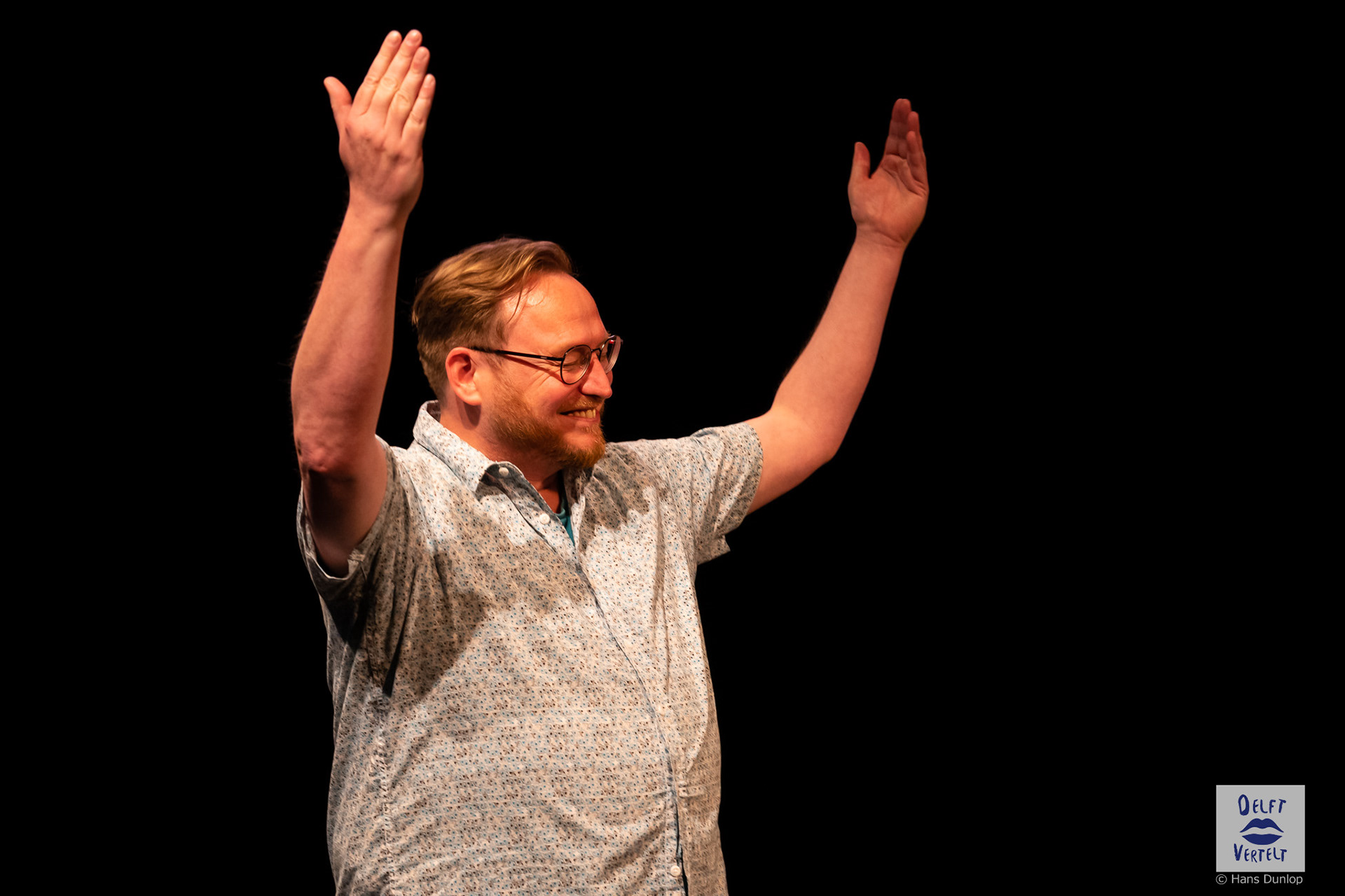 Een impressie van de 20e voorstelling van Delft Vertelt in het Rietveld Theater met Tjan van Loenen, Séphine Laros, Ric Berretty, Astrid Tan en Dick Stammes.