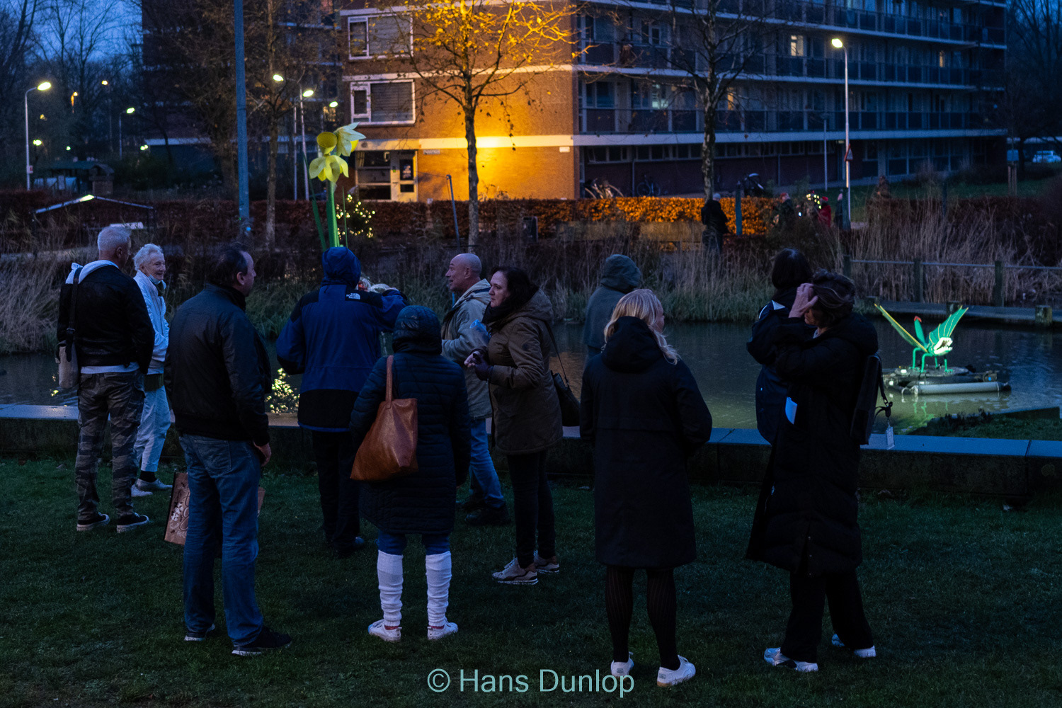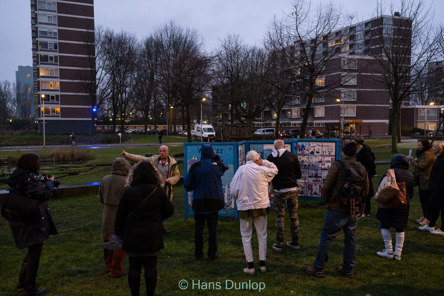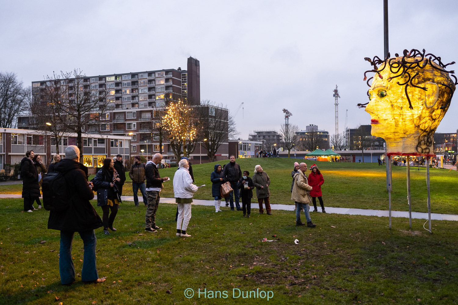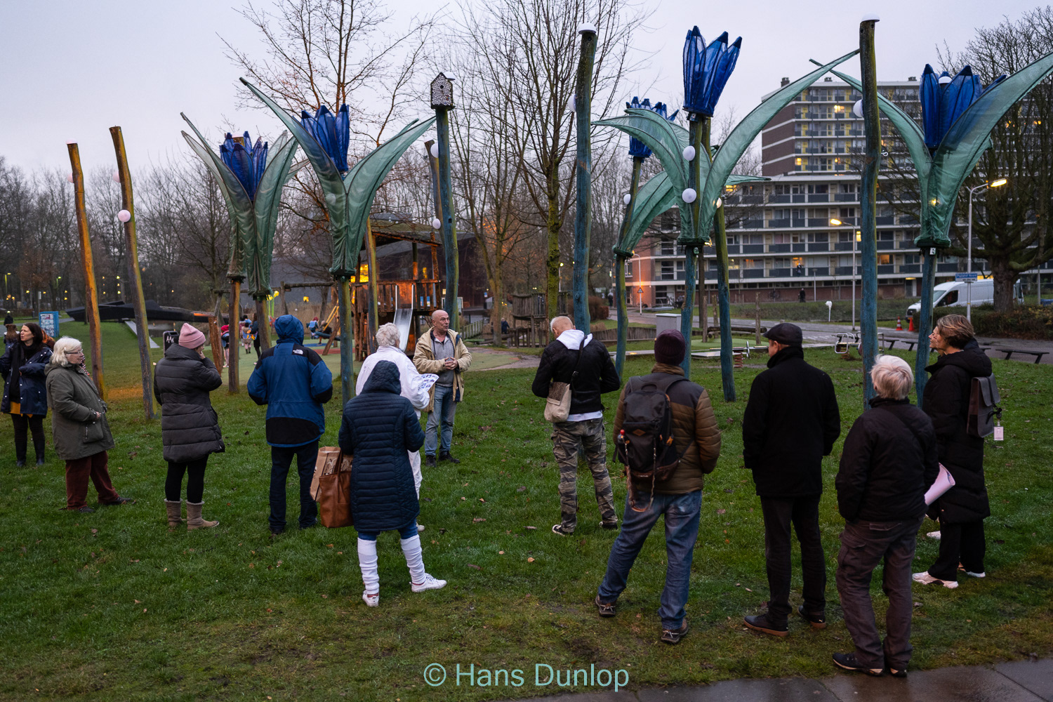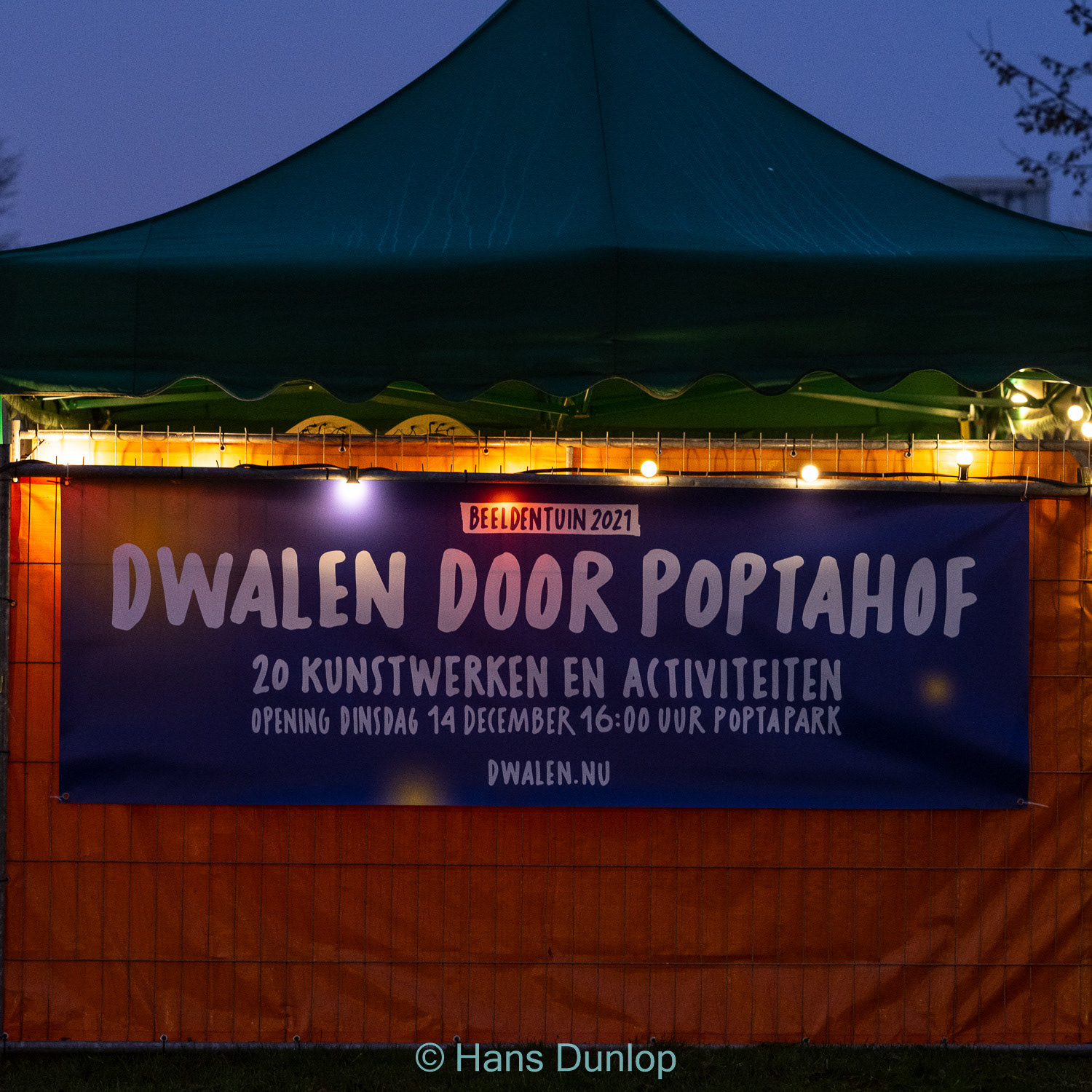 "Dwalen door Poptahof: een rondwandeling langs alle kunstwerken in de Poptahof tijdens de "Donkere Dagen van Delft". Een project georganiseerd door Stichting Straattheaterfestival Delft & Mooi Weer Spelen.