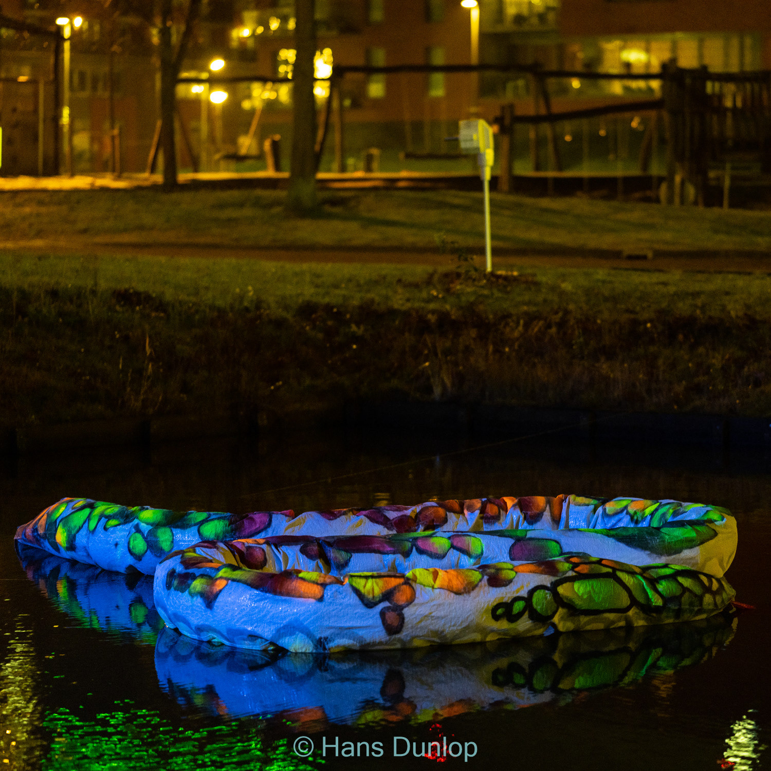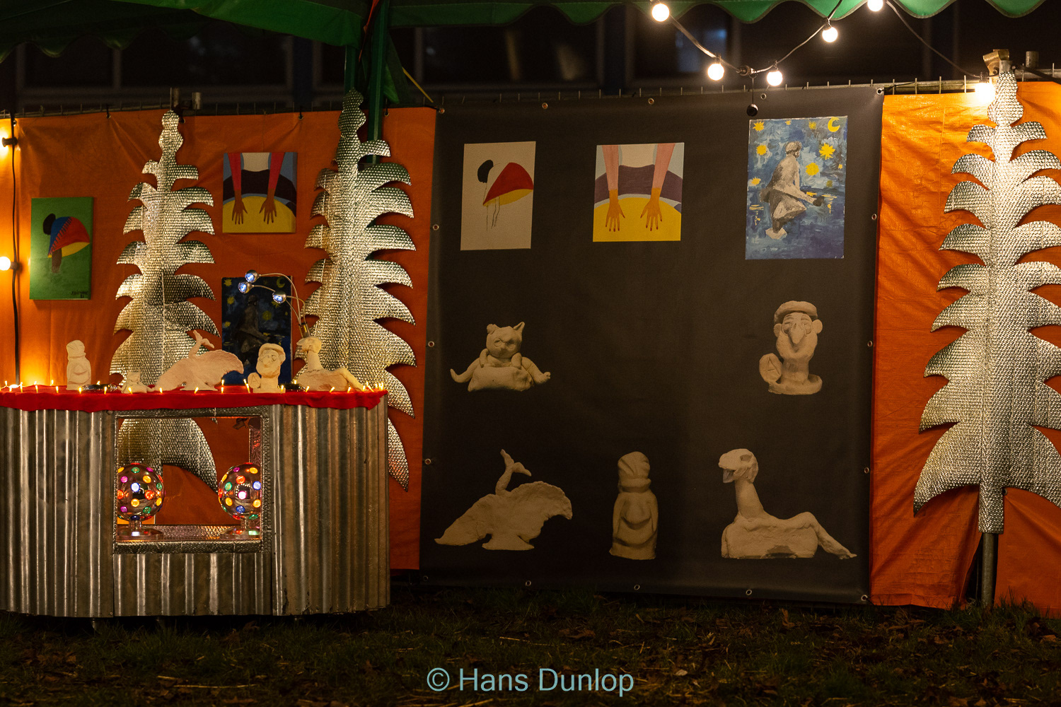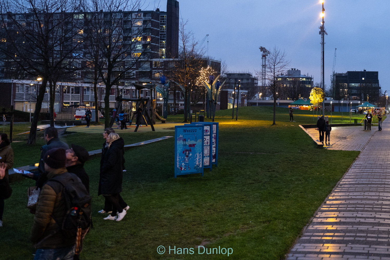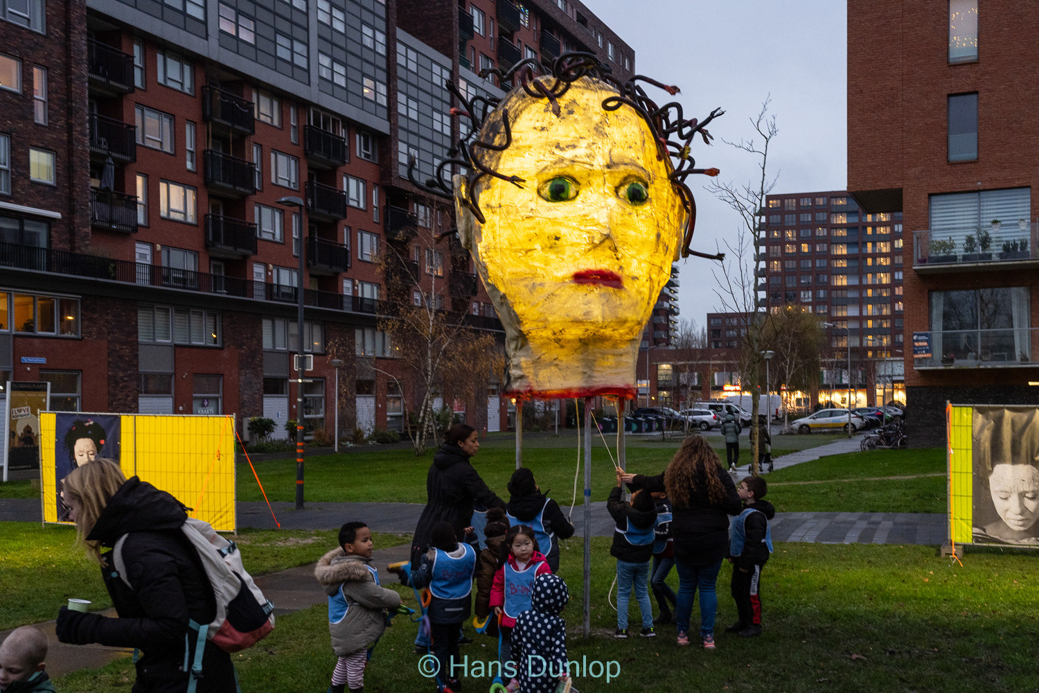"Dwalen door Poptahof: een rondwandeling langs alle kunstwerken in de Poptahof tijdens de "Donkere Dagen van Delft". Een project georganiseerd door Stichting Straattheaterfestival Delft & Mooi Weer Spelen.