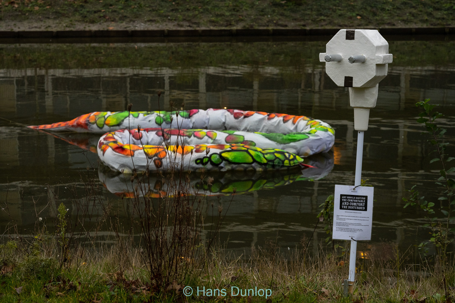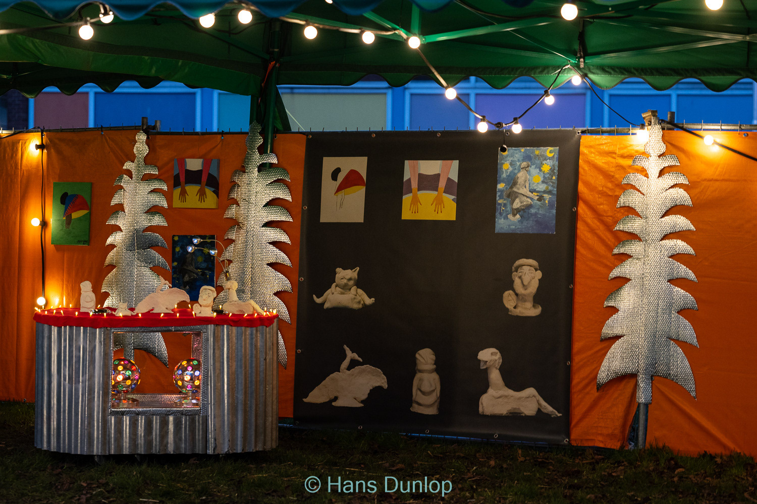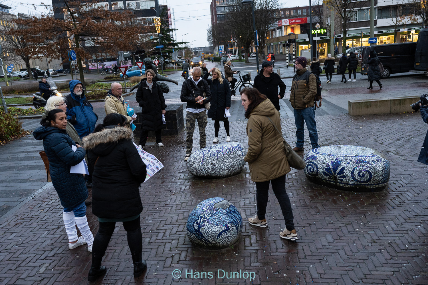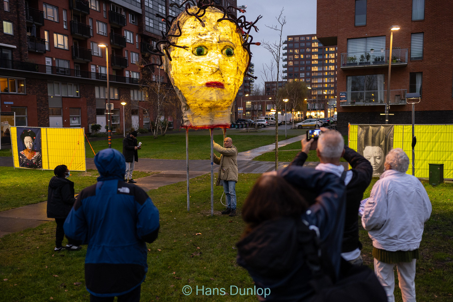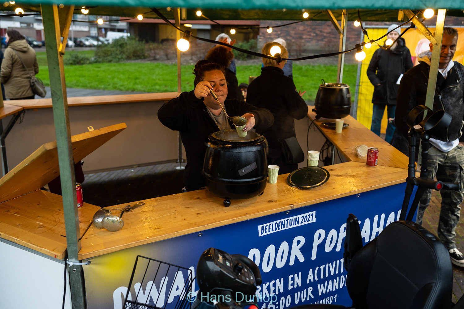 "Dwalen door Poptahof: een rondwandeling langs alle kunstwerken in de Poptahof tijdens de "Donkere Dagen van Delft". Een project georganiseerd door Stichting Straattheaterfestival Delft & Mooi Weer Spelen.