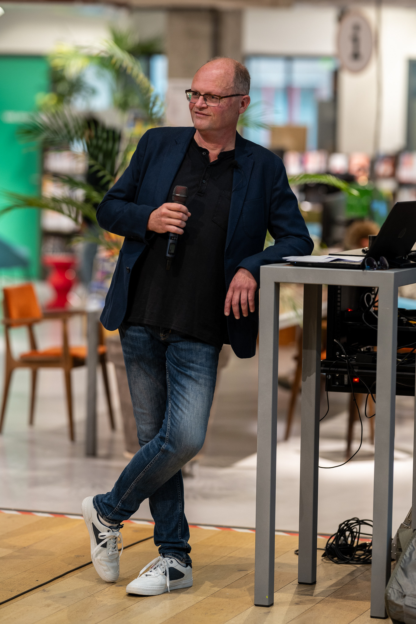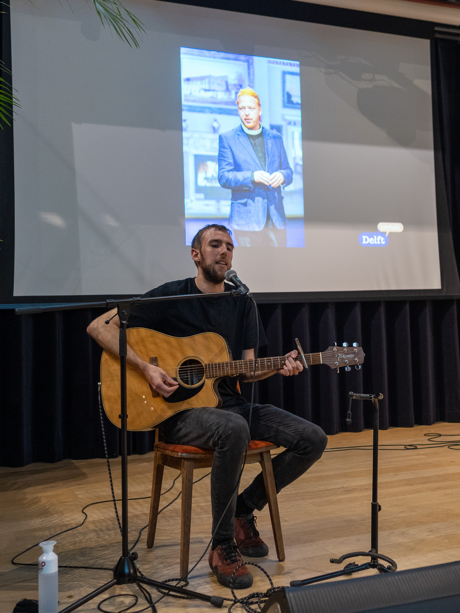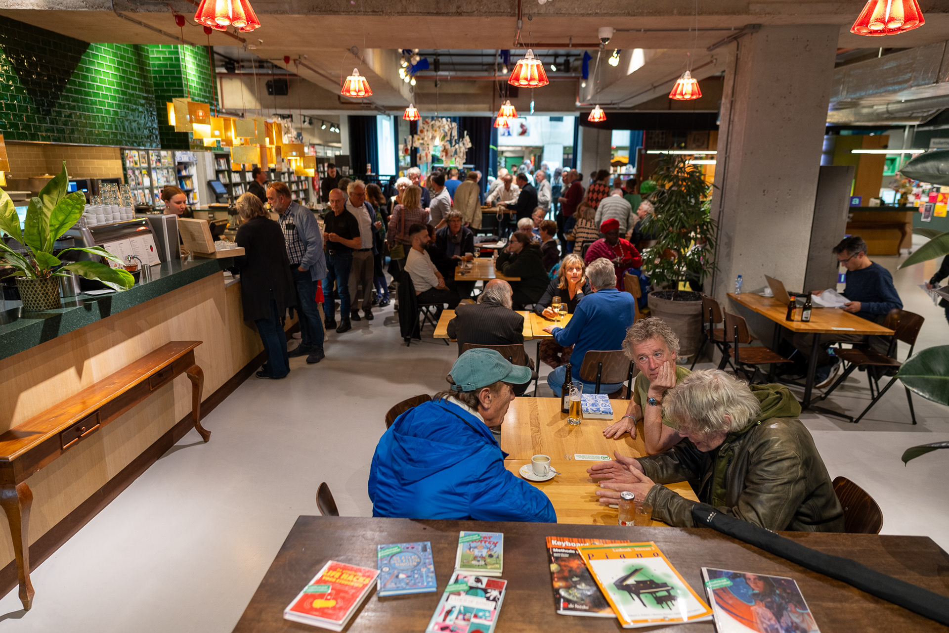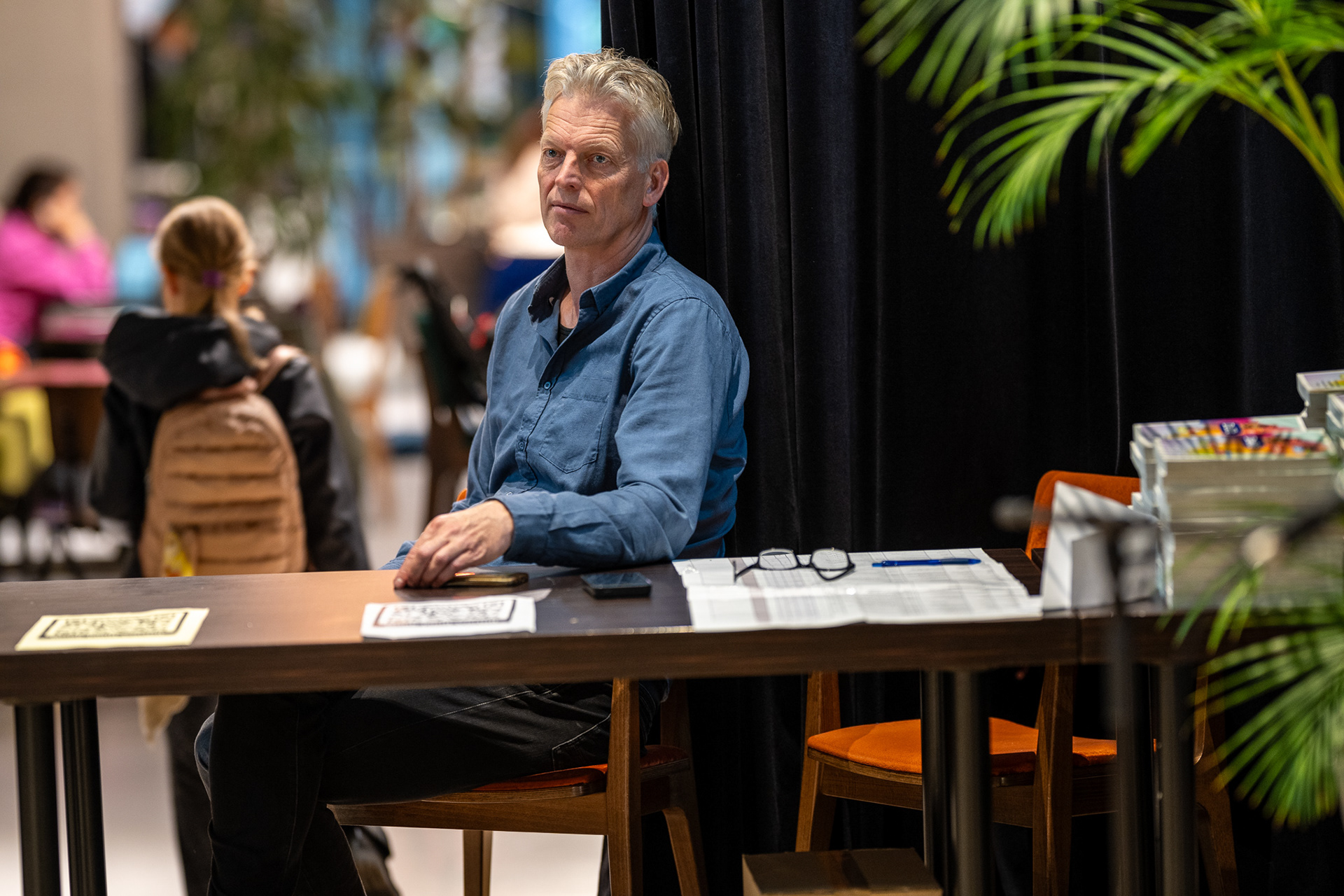 Een impressie van de presentatie van het boek Delft Vertelt op 27 september 2024 in OPEN, met: Dick Stammes; Feico Dillema; Gerard Jellema; Joke Kouwenhoven; Burgemeester Marja van Bijsterveldt; Nico Jouwe; Olmo van der Mast; Willem de Bie;