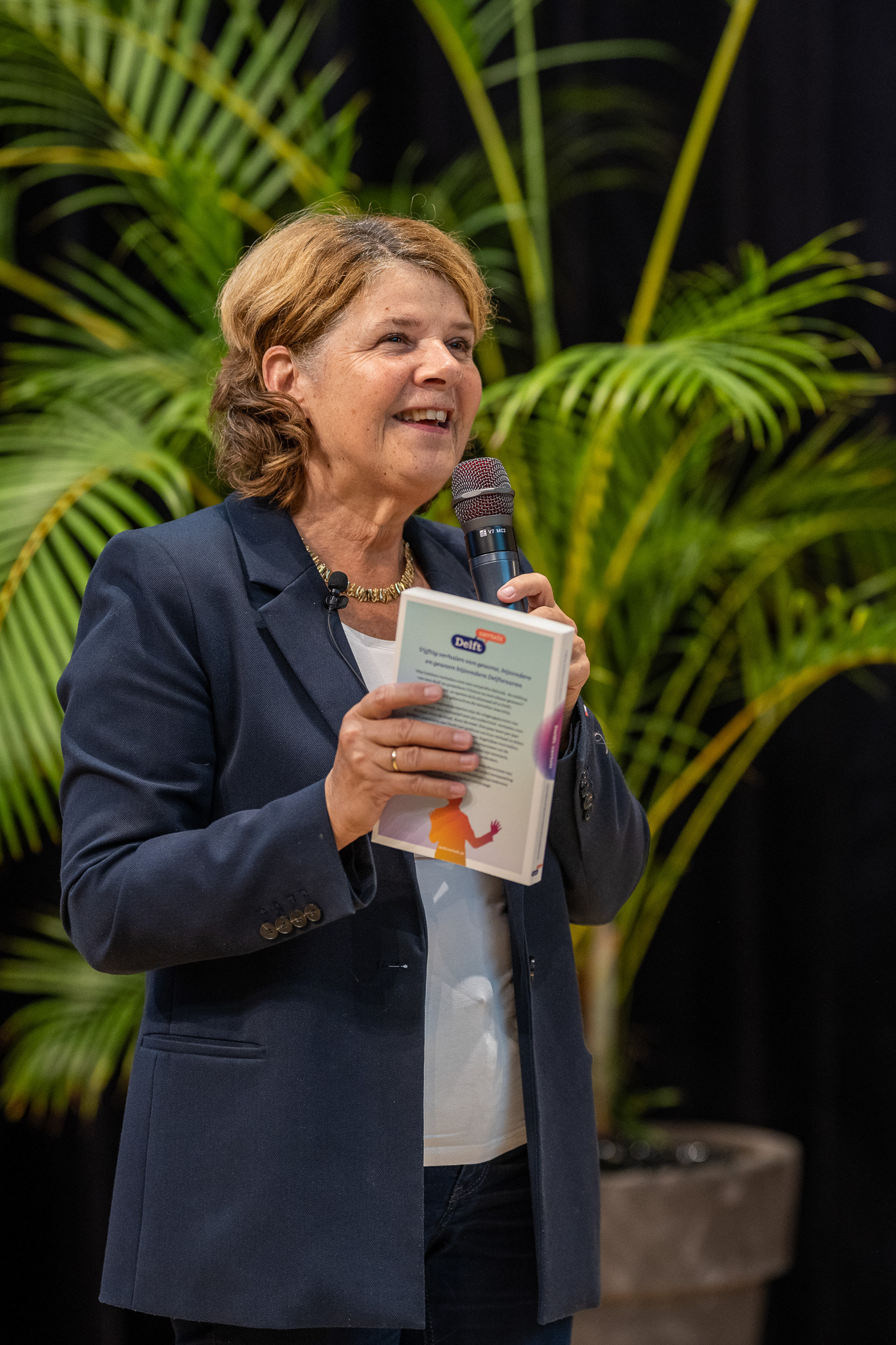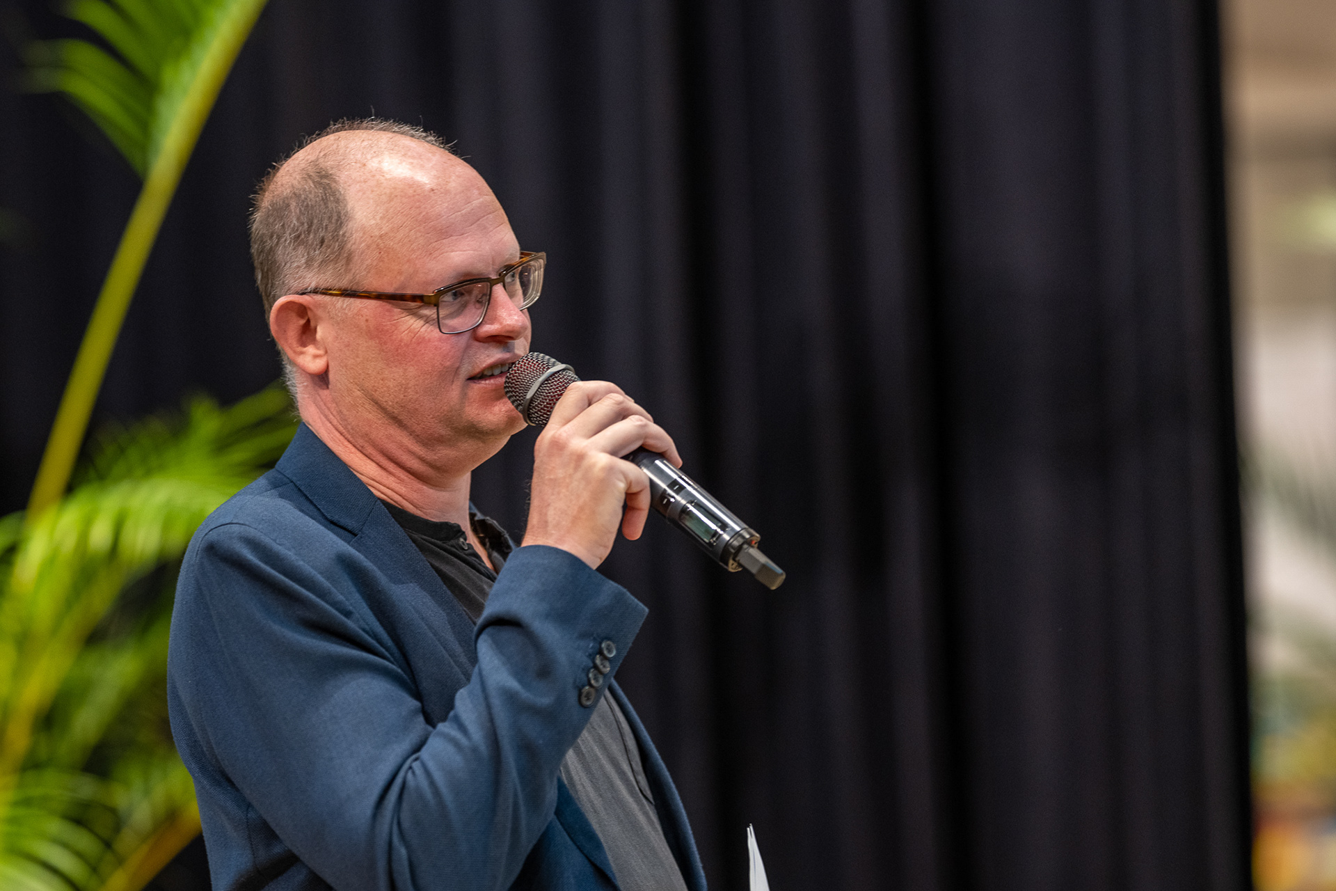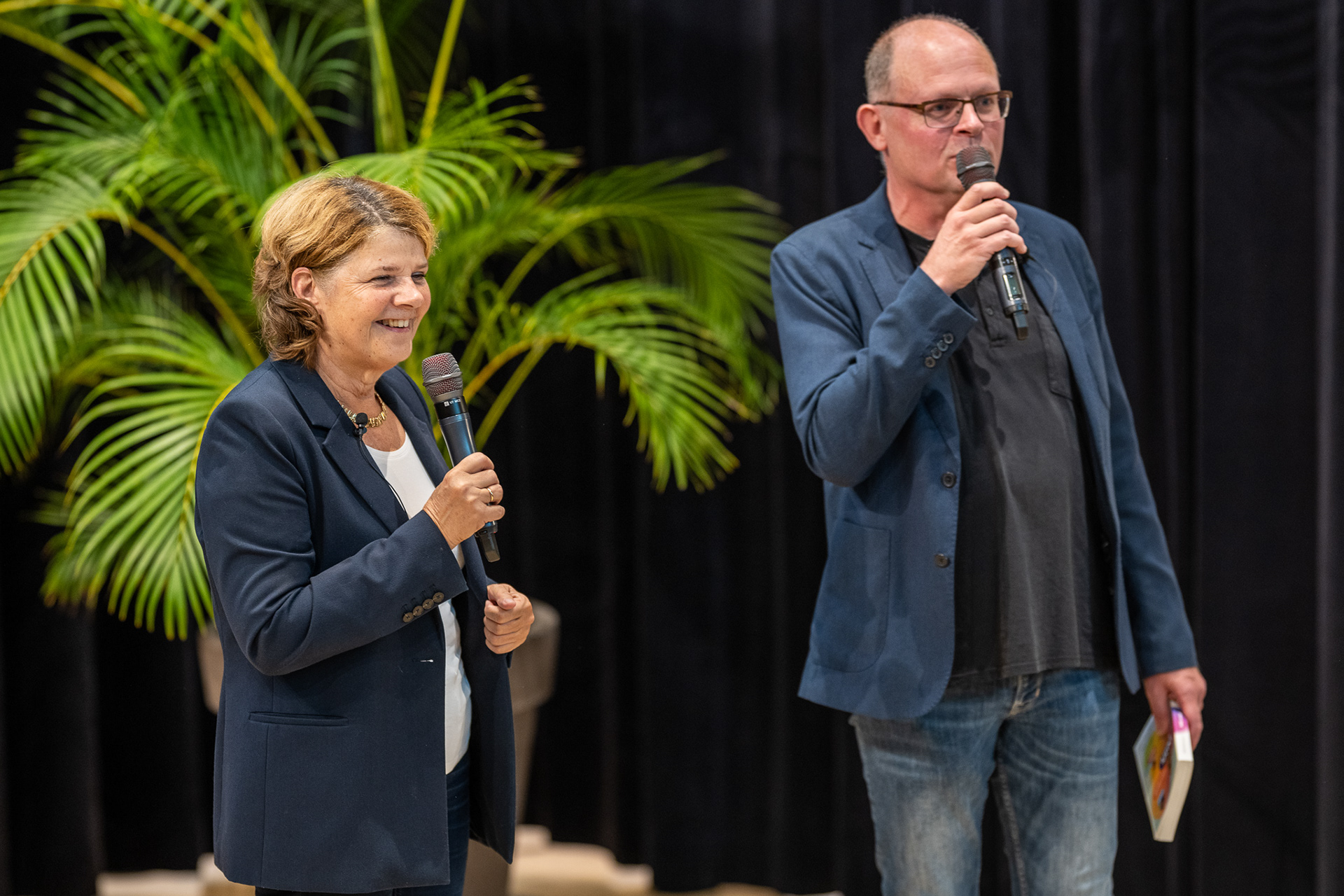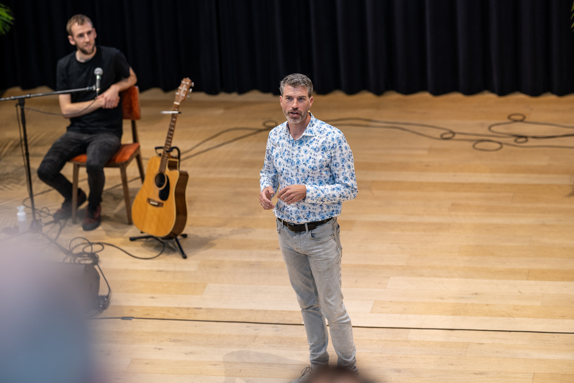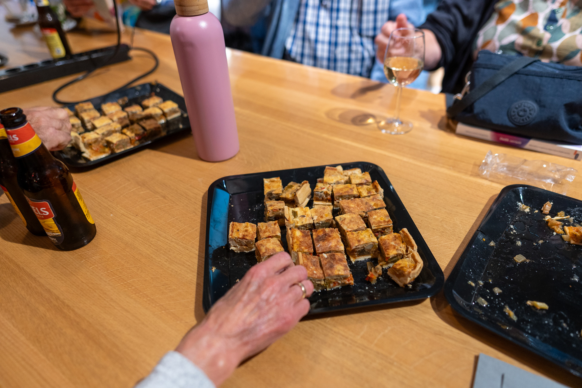 Een impressie van de presentatie van het boek Delft Vertelt op 27 september 2024 in OPEN, met: Dick Stammes; Feico Dillema; Gerard Jellema; Joke Kouwenhoven; Burgemeester Marja van Bijsterveldt; Nico Jouwe; Olmo van der Mast; Willem de Bie;
