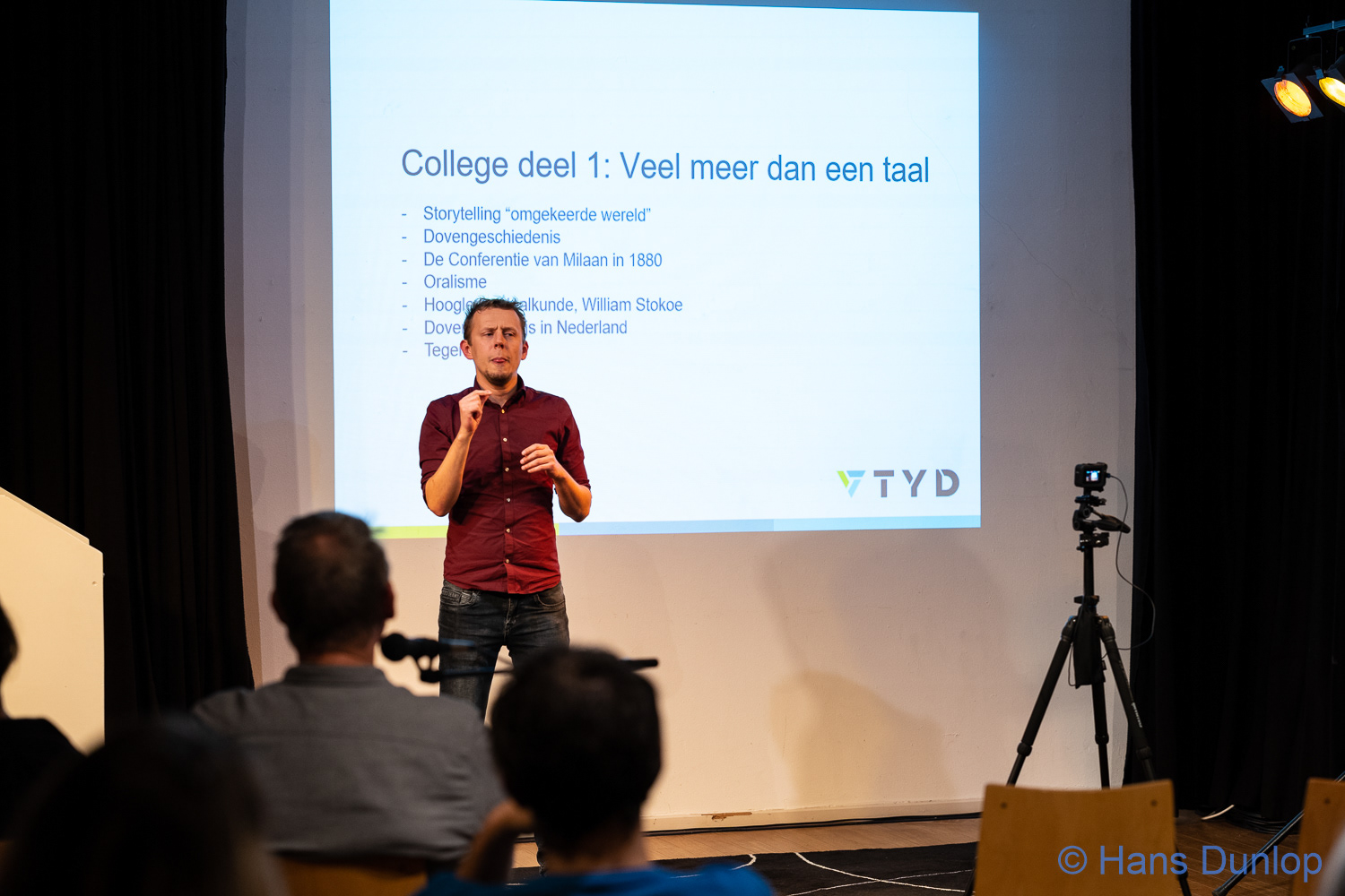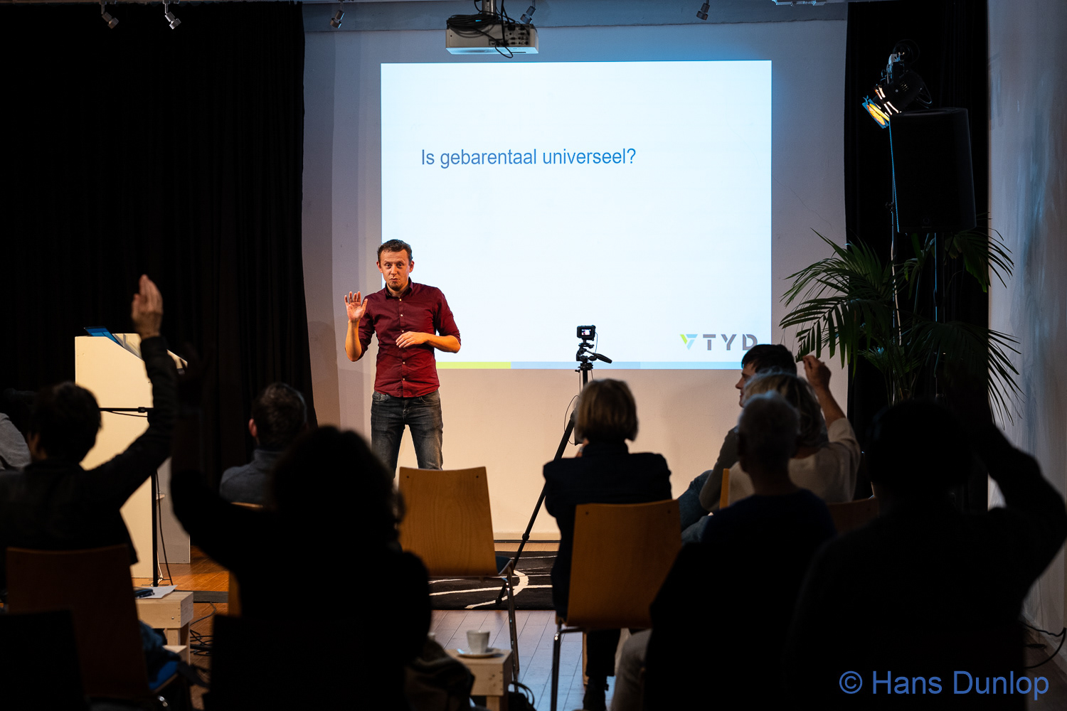 Een avond in het kader van Sprekend PK over de ontwikkeling en het gebruik van Gebarentaal in Nederland georganiseerd in Het Prinsenkwartier in Delft.